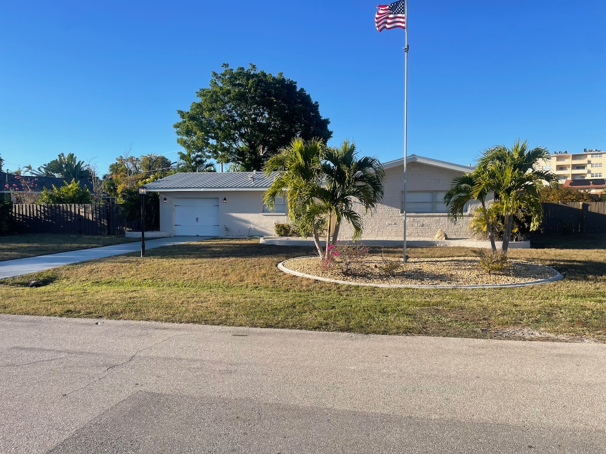 La nostra casa si trova in un quartiere tranquillo e sicuro, perfetto per lavorare a distanza, per vacanze in famiglia o per soggiorni a lungo termine in un ambiente adatto ai bambini. Spazioso e completamente attrezzato: 3 camere da letto • 2 bagni • Cucina completa • Lavatrice/asciugatrice • Parcheggio per 2 auto • WiFi • Smart TV • Attrezzatura da spiaggia disponibile (cavo/streaming non incluso). Posizione privilegiata: A 16 km da Fort Myers Beach, a 11 km dal centro e a 7 minuti a piedi da Publix, Walmart e ristoranti. L'aeroporto di RSW è a 20 minuti di auto.