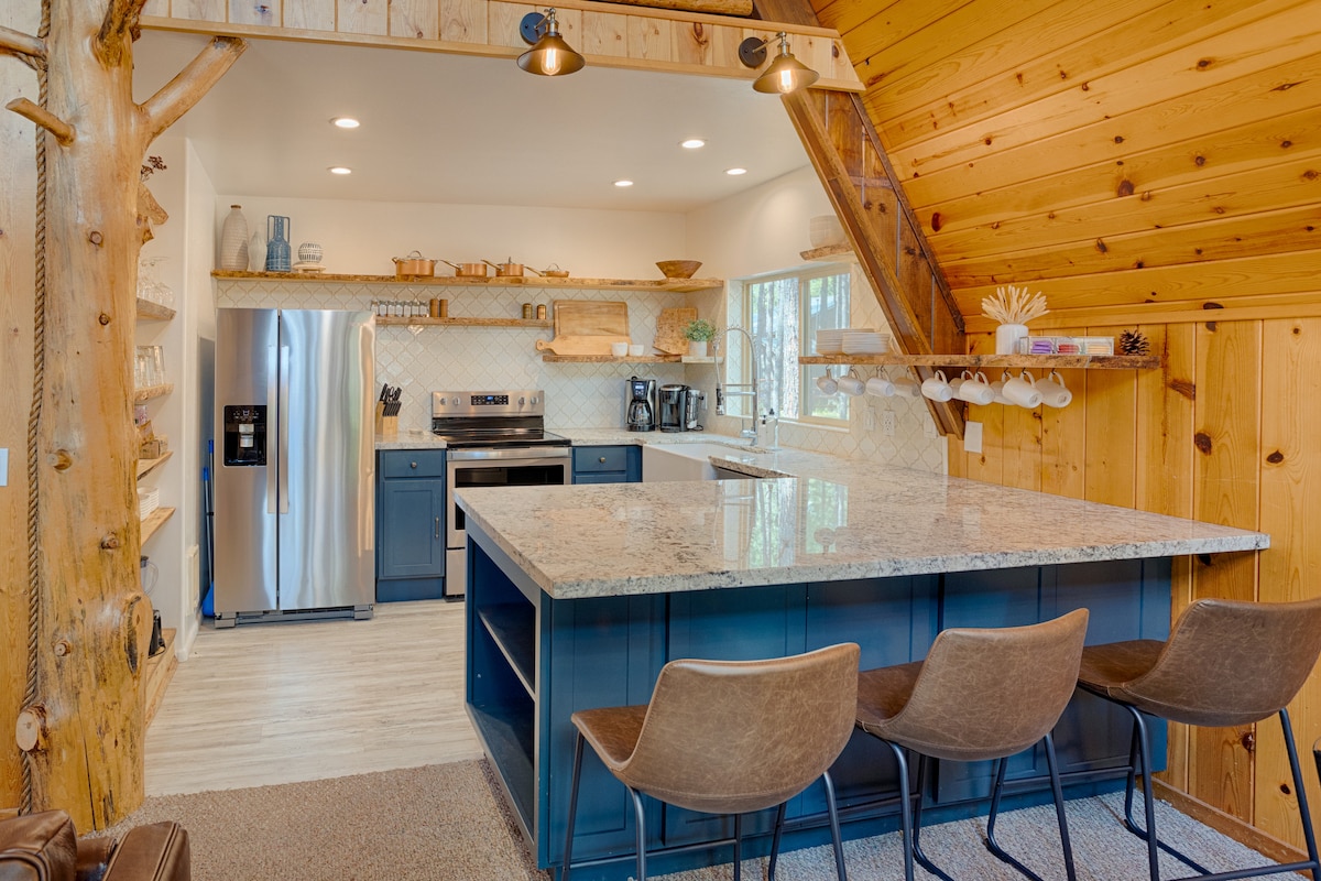 Questa è la tua vacanza perfetta in montagna! Sentiti come a casa in questo spazio bello e arredato con cura, con mobili accoglienti e tutti i servizi per rendere il tuo soggiorno facile, confortevole e indimenticabile. Questa proprietà di 3000 metri quadrati è interamente recintata, il che la rende perfetta per i tuoi amici a 4 zampe, che potranno esplorarla senza preoccupazioni. Non hai voglia di preparare il caffè al mattino? Indossa la felpa con cappuccio e attraversa il cancello sul retro per raggiungere la caffetteria più carina, Cycleogical Coffee!