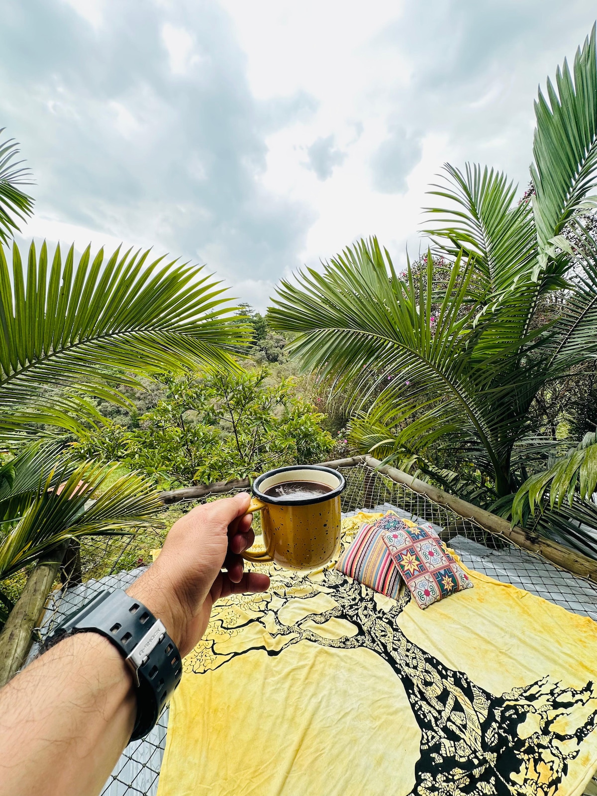 Aquí vas a encontrar el mas hermoso paisaje acompañado del canto de los pájaros y en el que puedes descansar en una gran malla aérea o hamaca privada y así disfrutar en el día de una grandiosa vista a las montañas y en la noche cuando esta despejado de un maravilloso cielo estrellado con un buen vino y una buena comida. @ hotelcampestrezona7