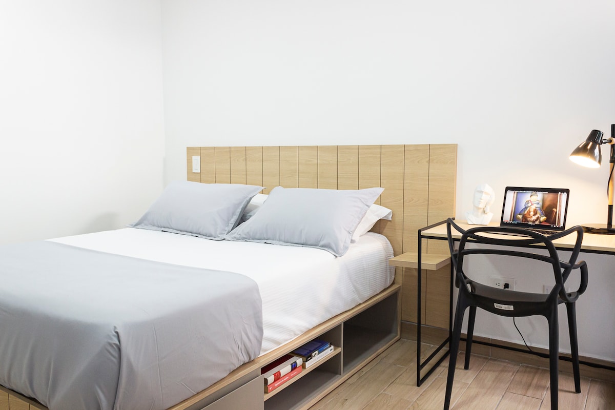 Wifi FO a 300 Mbps. Ospite gratuito. Grazie a questo spazio in posizione strategica, non dovrai rinunciare a nulla. Suite completamente arredata con aria condizionata, angolo cottura (macchina per il ghiaccio, macchina per il caffè, macchina per i panini, frullatore, mini frigo, fornello elettrico, forno a microonde), postazione di lavoro con monitor, PS4 (COD, Madden, NFS), salotto/zona lavoro, palestra, lavanderia e una vista incredibile. Situato in una delle zone migliori di Medellin, vicino a tutti i luoghi di interesse (centro commerciale Santa Fe, EAFIT, metropolitana, Parque Lleras, Provenza).