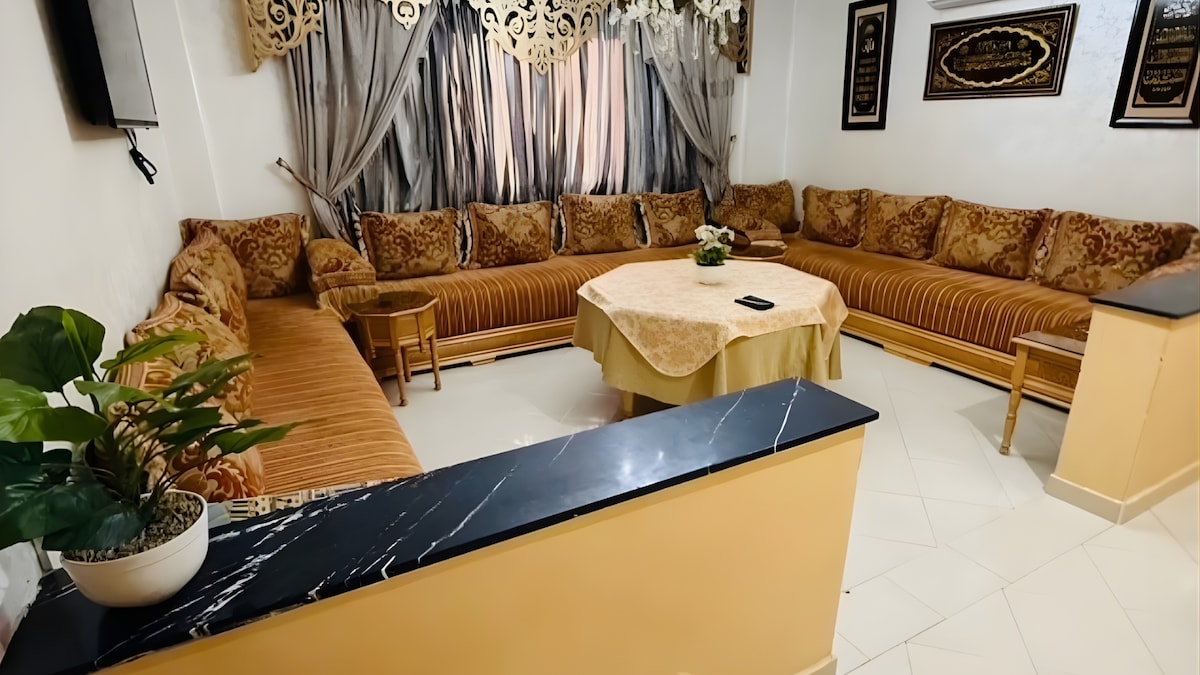 🌴🌴Bienvenue dans notre charmant appartement situé dans un quartier très calme avec wifi haut débit ,7 min au centre ville gueliz et 10min à jama3 lafna avec voiture ou taxi ou indrive Parfait pour les couples, les petits groupes ou les voyageurs d'affaires, cet espace moderne et accueillant est votre havre de paix après une journée bien remplie Ce logement est proche de tous les commodité ,markets ,pressing ,Restaurant, snack ,café ,hammam spa à 2 min à pieds ,salon de coiffure mixte etc