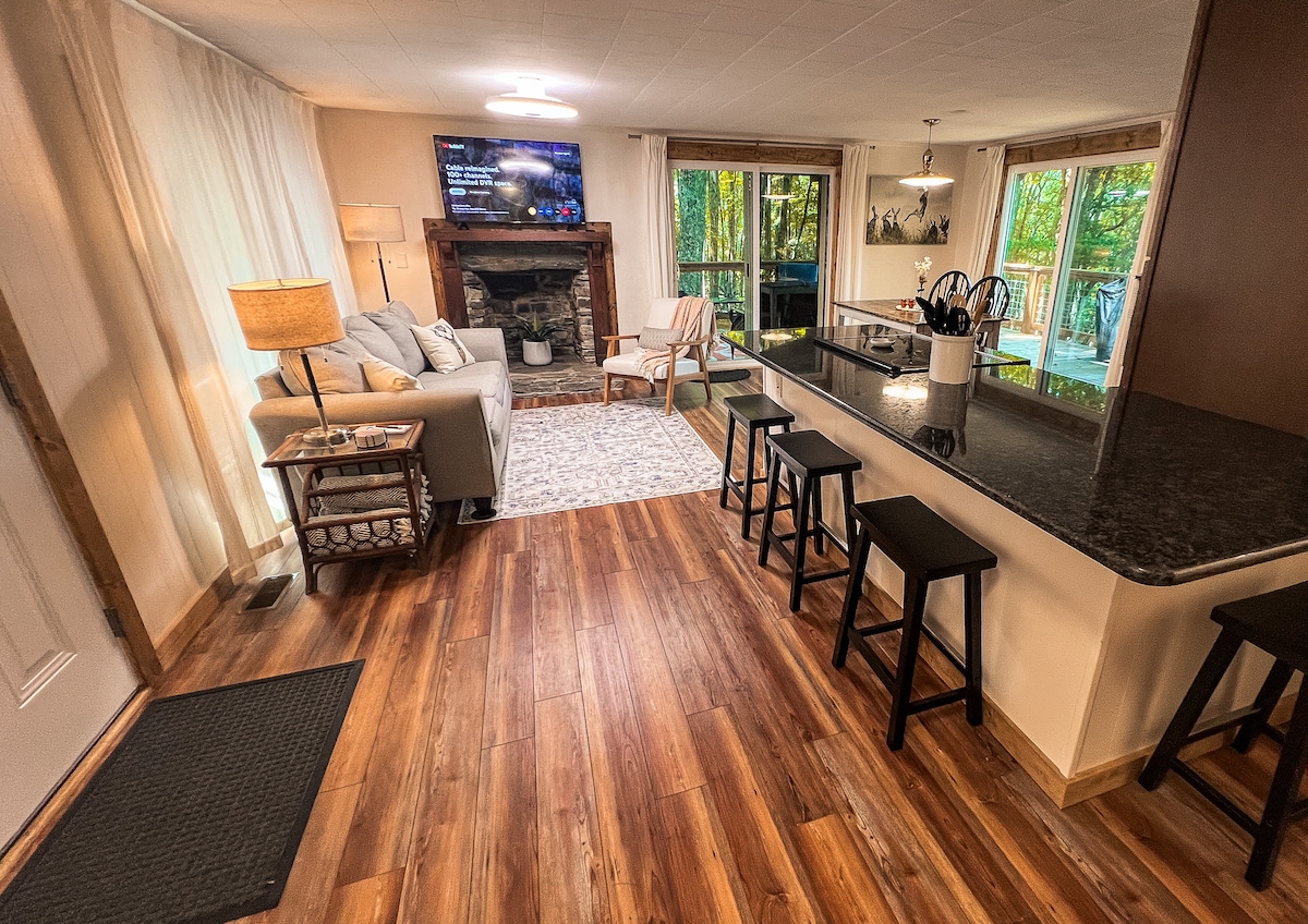 Questo alloggio accogliente e confortevole, con pareti in legno, si trova in un ambiente tranquillo con un torrente a Fleetwood, in North Carolina, tra Boone e West Jefferson (15-20 minuti!) e la Blue Ridge Parkway. Sentiti come se fossi in una casa sull'albero con tutti i comfort di casa. Circondato da alberi e fauna selvatica di montagna, con una strada sterrata statale. Le attività nelle vicinanze includono la pesca nel New River, escursioni sulla Blue Ridge Parkway, campi da golf pubblici e visite alle fattorie agrituristiche con alberi di Natale, mele, zucche, miele e altro ancora.