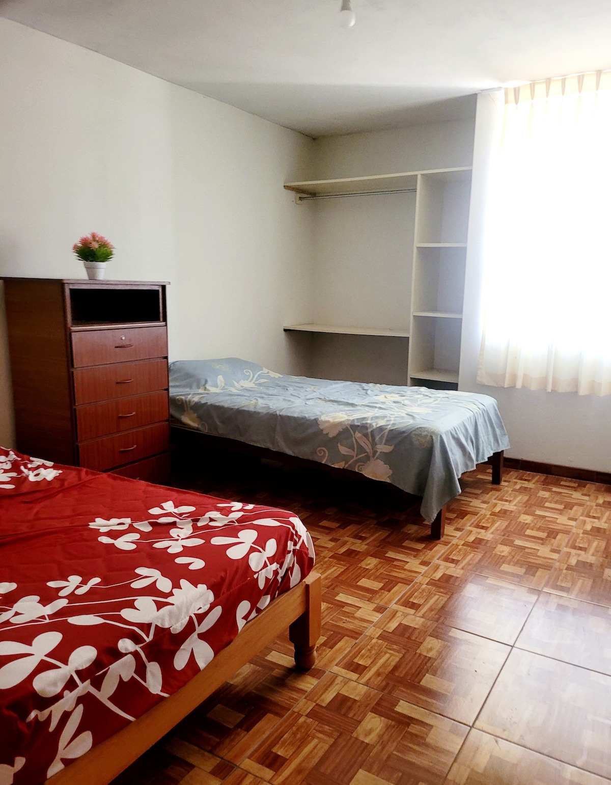 Moderno departamento AMOBLADO Ubicado a sólo 5 minutos (EN AUTO) del centro de Mollendo (plazas, mercado, etc.) y 7 minutos (EN AUTO) de Catarindo - Cuenta con 01 habitación amplia con DOS CAMAS de 02 plazas, TV de 40¨ y baño completo con ducha y agua caliente las 24 horas - Área de cocina equipada con electrodomésticos, mesa de comedor y pequeña sala de estar con ½ baño, sofá y TV de 40¨ INCLUYE: Agua potable, luz, TV cable, WiFi, uso de COCHERA y terraza compartida