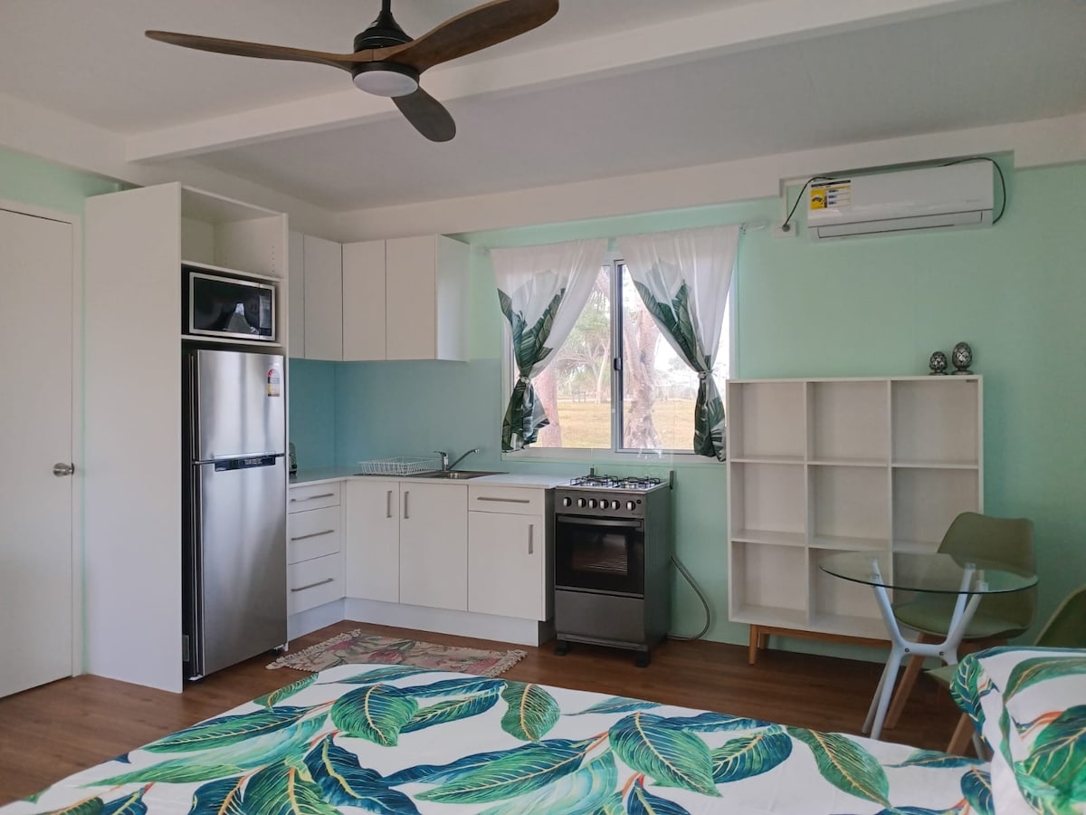 I'm offering a large fully self-contained one-bedroom apartment with its own private, secure entrance and all the creature comforts including TV, Air conditioning, ceiling fans, Fast Starlink Internet, swimming pool and large outdoor area. Featuring a King Bed or 2 singles if desired this apartment is just 5-to-10-minute walk from the centre of Port Vila. The property includes the Air BnB apartment and a two-bedroom residence and is situated 100 mts from a busy road, shops and a bus stop.