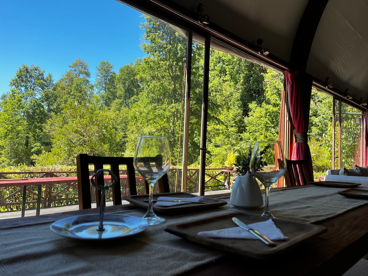 Immerso in una splendida foresta autoctona, i nostri rifugi di montagna offrono un'esperienza unica di disconnessione e contatto con la natura, con vista mozzafiato sul maestoso vulcano Llaima. L'ambiente è tranquillo e armonico, ideale per chi cerca pace e rinnovamento. I rifugi sono autosufficienti, funzionanti con energia solare, dispongono di una connessione internet tramite Starlink. Completamente attrezzate, sono perfette per godersi la natura con tutti i comfort moderni.