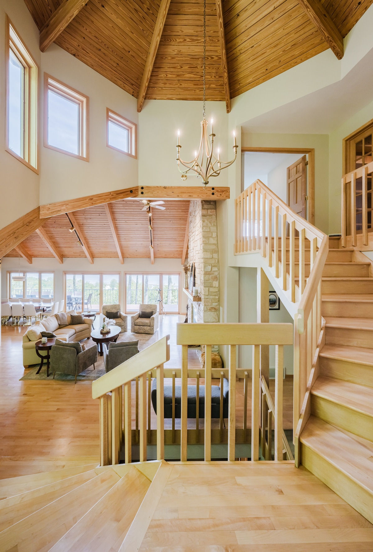 Rifugiati in un santuario A-frame completamente ristrutturato su 80 ettari boschivi privati con mezzo miglio di fronte al fiume Menominee. Travi rustiche a vista, ricchi toni del legno e aggiornamenti eleganti. Questa pensione si trova separatamente dalla casa principale della proprietà, che rimarrà libera se l'A-frame è prenotato o la stessa parte può prenotare entrambe le proprietà, garantendo completa privacy e tranquillità durante il soggiorno. Lascia che il dolce mormorio del fiume e la quiete della foresta ti cullino nella pace, un gioiello nascosto!