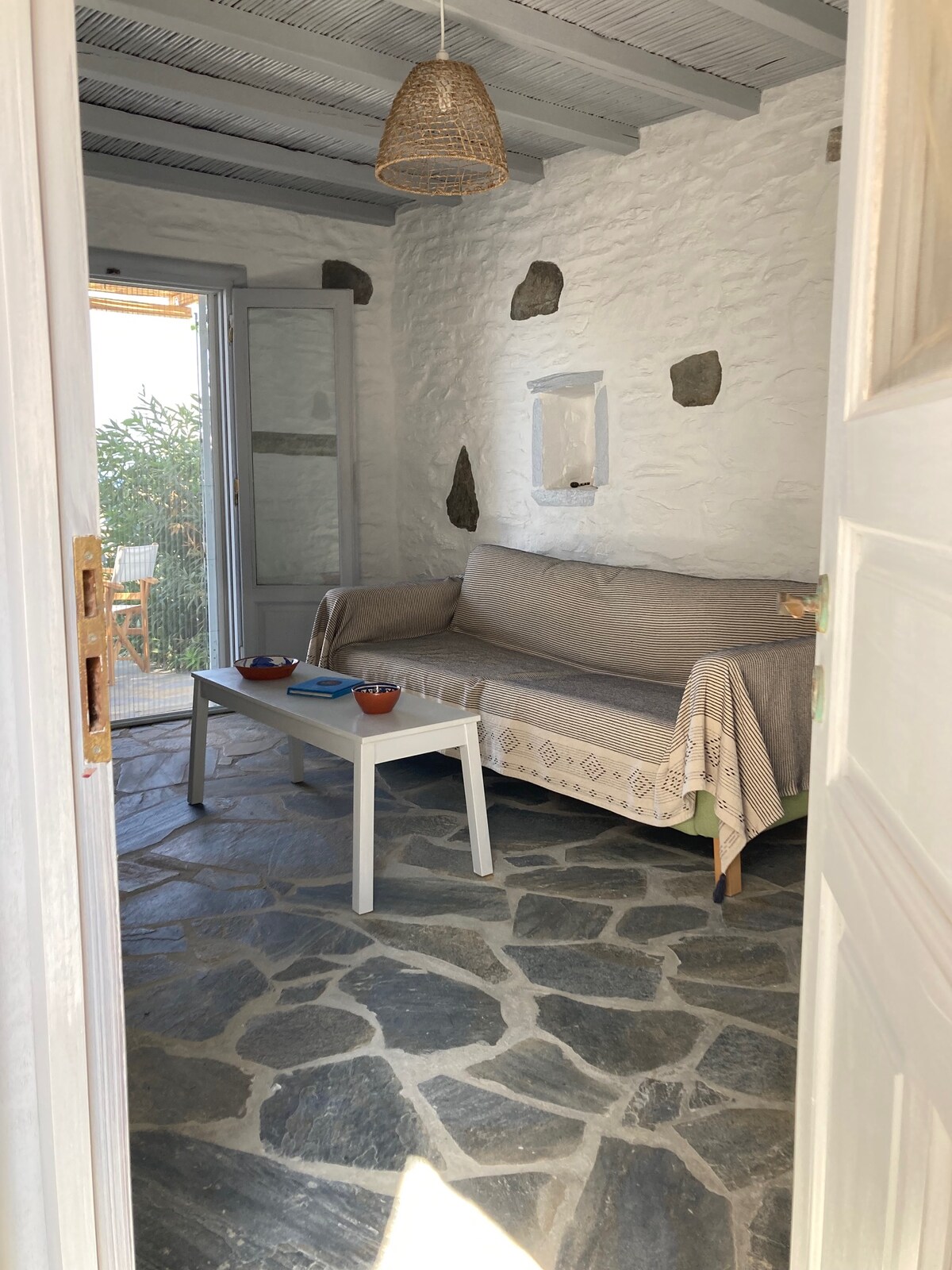 Questa struttura sul lungomare delle Cicladi si trova in un luogo pittoresco e incontaminato chiamato Flambouria (12 km dal porto di Merichas). Dispone di un balcone frontale dove poter gustare colazioni mattutine, tramonti pomeridiani e una vista invidiabile sul Mar Egeo e di un balcone posteriore che si collega ad un vigneto privato. Questa casa luminosa e accogliente (50 mq) può ospitare fino a 4 persone (un letto matrimoniale e un divano letto per 2 persone). Tutte le camere sono arredate con cura e dotate di tutti i comfort.