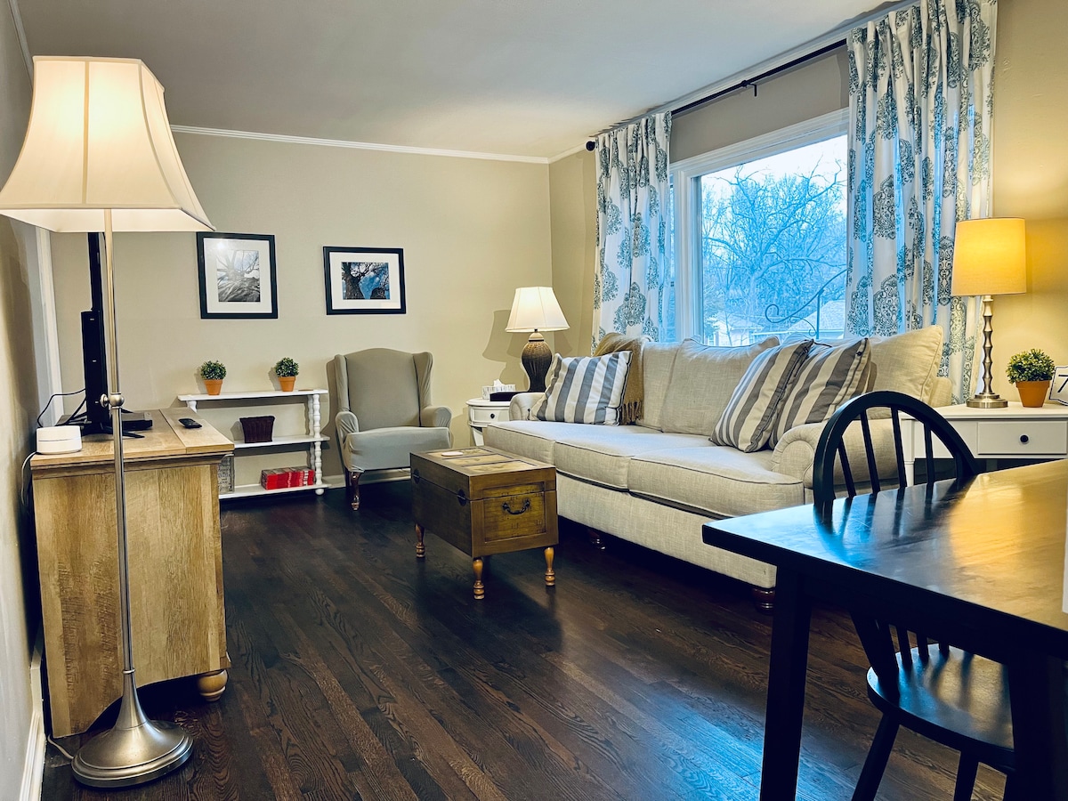 This 400 sq. ft. guesthouse (studio) on a historic property in Westwood, KS has recently been fully renovated and furnished. It has a completely equipped kitchenette, comfortable living area, along with a queen-size bed. The guesthouse also includes a washer/dryer off the kitchenette. The guesthouse is a separate dwelling located on a half an acre property which includes the original farmhouse built in 1889 - the guesthouse added in 1920. Westwood, Kansas is 2 miles from the Country Club Plaza.
