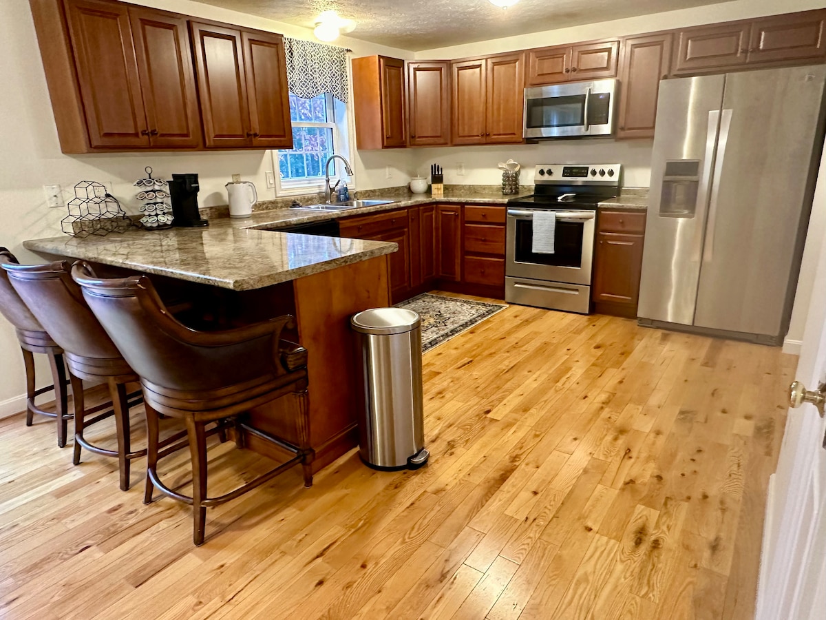 Grazioso appartamento intero con 2 camere da letto. Recentemente ristrutturato in una posizione comoda. Proprio al centro di tutte le attività locali sulla Route 101A. Una camera da letto con letto king-size e un'altra camera da letto con un letto queen-size. Un ampio soggiorno con un divano letto aggiuntivo per ospitare fino a due persone in più. E infine una cucina con elettrodomestici e zona pranzo per quattro persone. La presa NEMA 14/50 è ora disponibile per i nostri ospiti con veicoli elettrici. Costi per gli ospiti aggiuntivi: dopo 2 ospiti, è di 10$ a notte.
