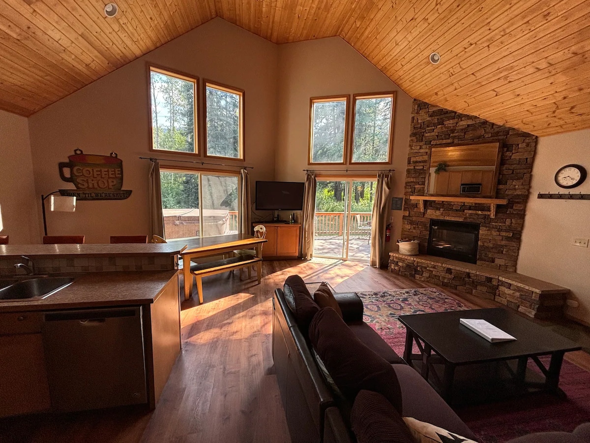 *NUOVA SAUNA* Scopri il fascino di Dancing Bear Cabin! Immergiti nel fascino di questo elegante rifugio. Goditi la vista sul fiume e sulle montagne lontane da 2 accoglienti camere da letto e un ampio soggiorno. Goditi uno spazio esterno privato, completo di un caminetto riparato, ideale per assaporare la bellezza PNW. Inizia la giornata nella vasca idromassaggio, guardando l'alba e rilassati al chiuso con una serata al cinema su un grande schermo. Al Dancing Bear Cabin, gli amici a quattro zampe sono i benvenuti per una vacanza deliziosa!