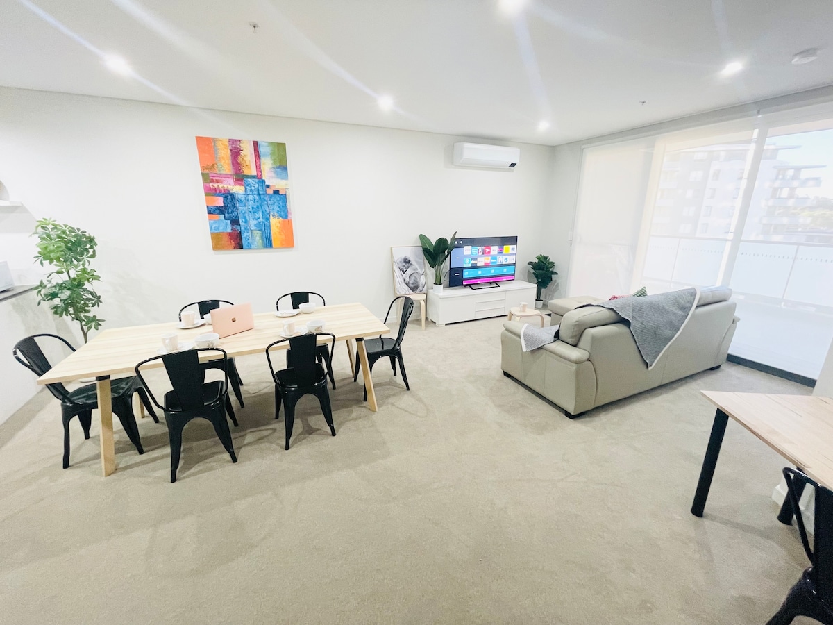 Goditi una vacanza all'insegna dello stile in questo appartamento in centro con 2 camere da letto Inoltre: posto auto x 1, viste notturne spettacolari su Parramatta, arredato come una casa lontano da casa A portata di mano: - Westmead Hospital (300m) - WSU (220 m) con negozi di alimentari/al dettaglio, tra cui GYG, giapponese, vietnamita, caffè, barbiere, salone di bellezza, Chatime - Stazione ferroviaria (400 m); 4 fermate per la città; linea diretta per le Blue Mountains - Metropolitana leggera (300 m) NOTA: ideale per 4 ospiti; 1 lettino da campeggio (peso massimo 130kg) su richiesta.