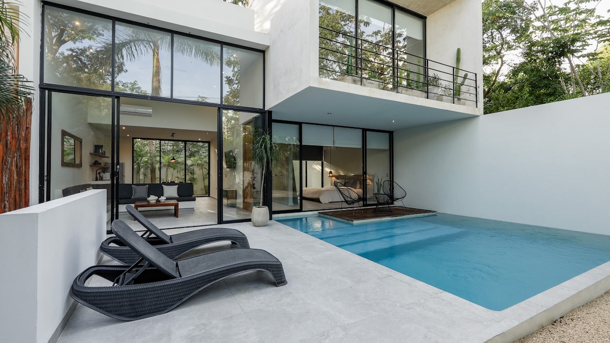 Benvenuti nella bellissima Casa Agosto! Questo splendido appartamento a due piani dispone di un grande salotto open space, 2 camere da letto, 2 bagni privati completi, 1 bagno di servizio, un bellissimo giardino privato, una piscina privata, sedie a sdraio, amaca, sezionale all'aperto e un barbecue. Con spazio per 4 persone, il posto è ideale per coppie, famiglie, amici e viaggiatori d'affari. La tua prenotazione include il servizio di portineria gratuito e l'accesso preferito ad alcuni dei migliori beach club di Tulum.