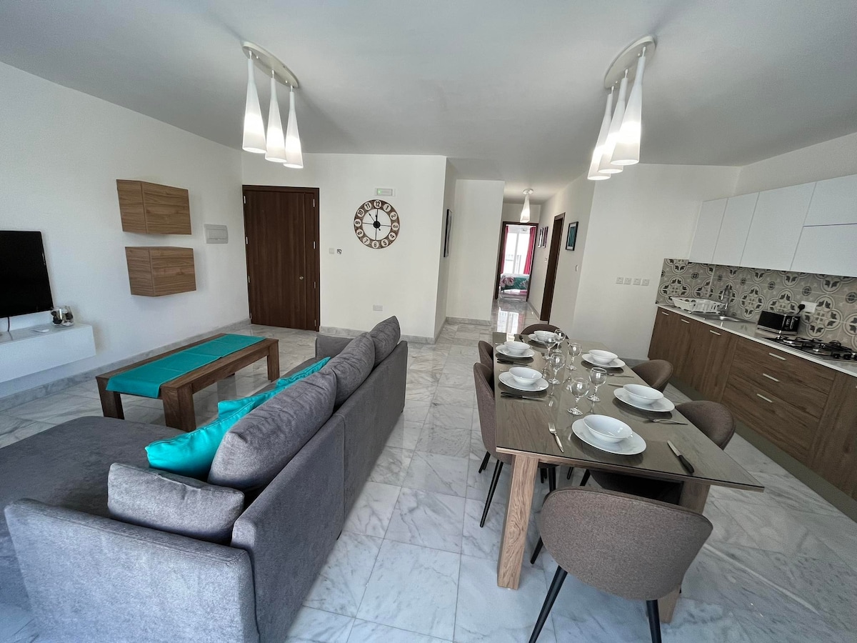 Nuovo appartamento di 85 metri quadrati al 3° piano. Dispone di 2 camere da letto e 2 bagni, cucina completamente attrezzata, zona pranzo e soggiorno e un piccolo locale lavanderia. Aria condizionata, connessione internet veloce e WI-FI gratuito. Vicino al centro del paese. I negozi si trovano a meno di 100 metri e i ristoranti a 250 metri. La fermata dell'autobus è a soli 30 metri di distanza e il parcheggio è disponibile di fronte all'appartamento. Posizione ideale: 2 km dalle spiagge sabbiose; Golden Bay, Gnejna Bay e Riviera Bay.