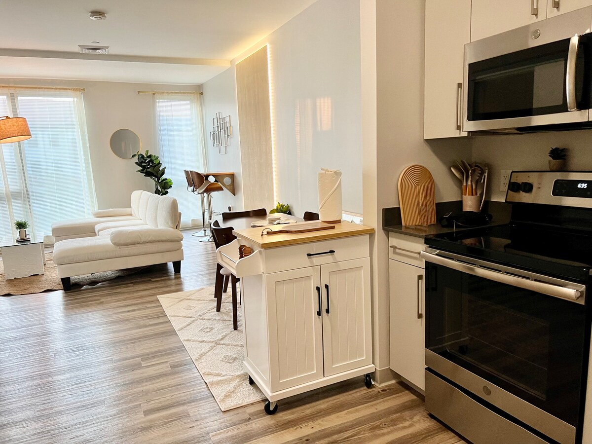 Goditi Boston in un elegante bilocale con arredi interni eleganti, per soggiorni lunghi e brevi. A soli 5 minuti a piedi dalla linea T e vicino al Boston College e ad Harvard, puoi immergerti con gusto nella vita di Boston. Caratteristiche dell'unità -> Portineria 24 ore su 24, 7 giorni su 7 -> Wifi velocissimo -> Soggiorno con TV Roku da 65" -> Roku TV da 50" in camera da letto -> Cucina completamente rifornita -> Lavatrice e asciugatrice -> 2 comodi letti a due piazze -> 1 letto singolo Ideale per chi viaggia per lavoro, coppie, infermieri e tutti coloro che desiderano vivere Boston con stile!