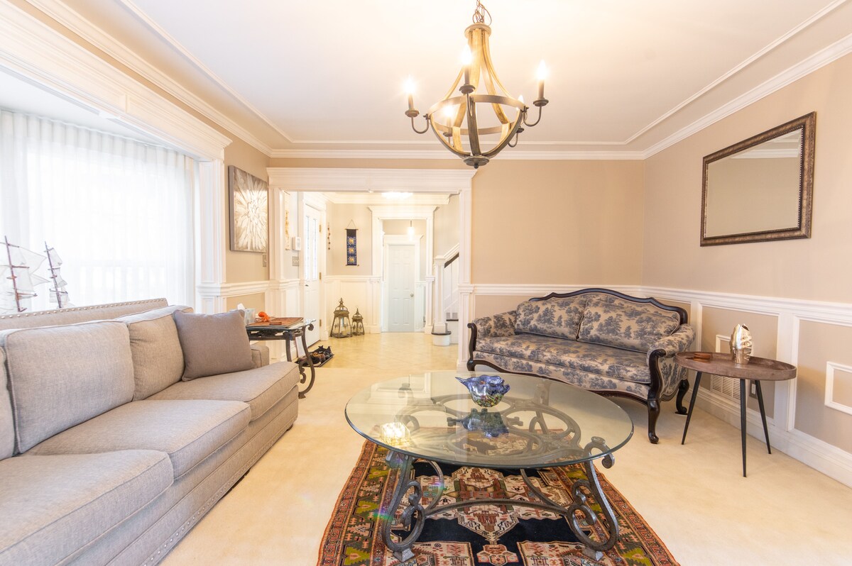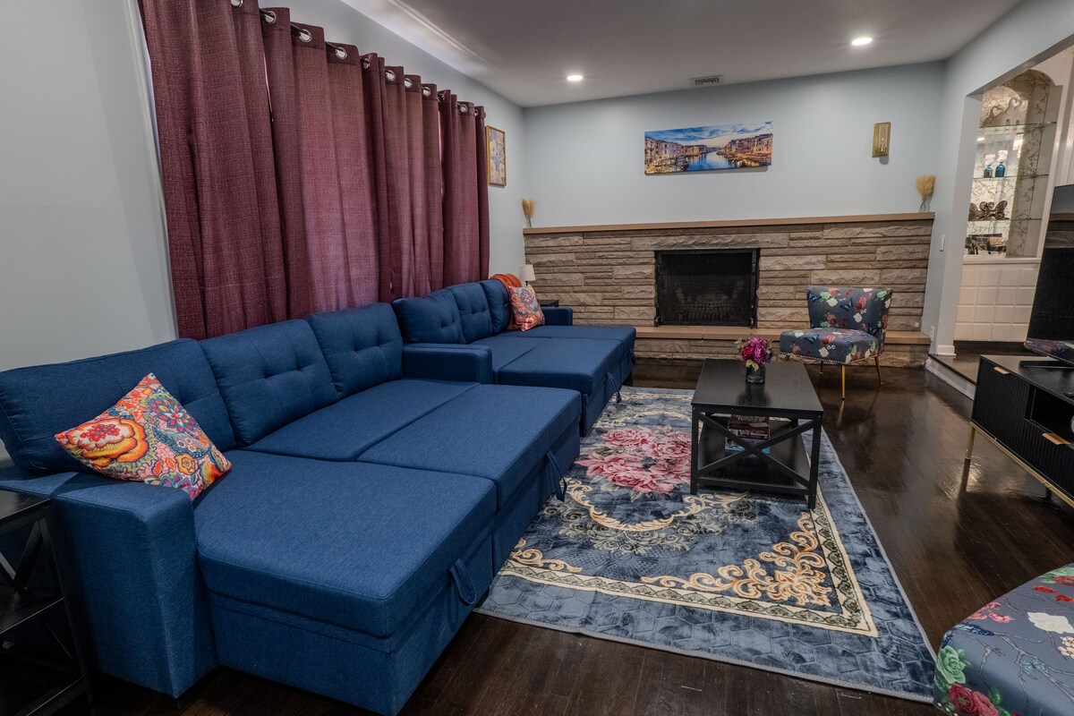 Benvenuti nella nostra casa con 6 camere da letto in un tranquillo sobborgo del New Jersey, perfetta per famiglie e amici. Tra le caratteristiche principali troviamo il wifi ad alta velocità, un accogliente camino e una camera da letto dotata di proiettore. Ogni camera da letto vanta un comodo letto matrimoniale, completato da 2,5 bagni per una maggiore comodità. Goditi l'ampio cortile con patio, barbecue e zona pranzo per divertirti all'aperto. L'ampio parcheggio garantisce un soggiorno senza problemi. Scopri un mix di comfort moderni e fascino casalingo per un indimenticabile rifugio suburbano.