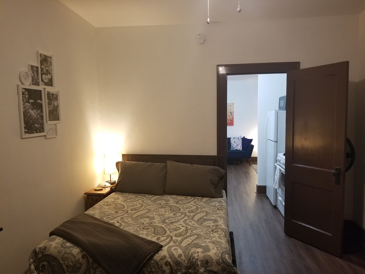 Monolocale (2° piano senza ascensore) in casa privata. Ingresso privato esterno dal vialetto sul retro della casa. Parcheggio privato fuori strada. Camera da letto con 1 letto matrimoniale, cucina e bagno. Può ospitare 1 persona o 1 coppia (1 letto). C'è una TV. (Streaming Roku) Le scale che portano all'appartamento sono strette e ripide. Se hai problemi di mobilità a salire le scale, potrebbe valere la pena prendere in considerazione un altro alloggio. Il letto nell'appartamento è un letto matrimoniale standard, non un letto queen o king.