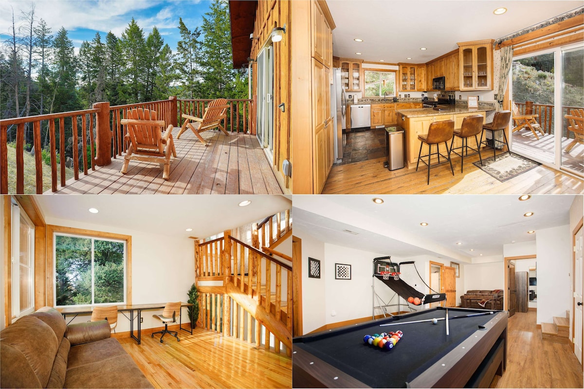 Welcome to our Spacious Mountain Chalet, your exclusive cabin in the serene mountains above Park City. This newly renovated home perched atop world-famous Park City offers unparalleled views, a peaceful neighborhood, and a cozy home base right next to Park City's top attractions and 7 world-class ski resorts. Enjoy a jetted jacuzzi, 4 balconies, a fully stocked game room, almost an acre of land, stunning wood finishes, large windows for taking in the scenery, and classic cabin décor.