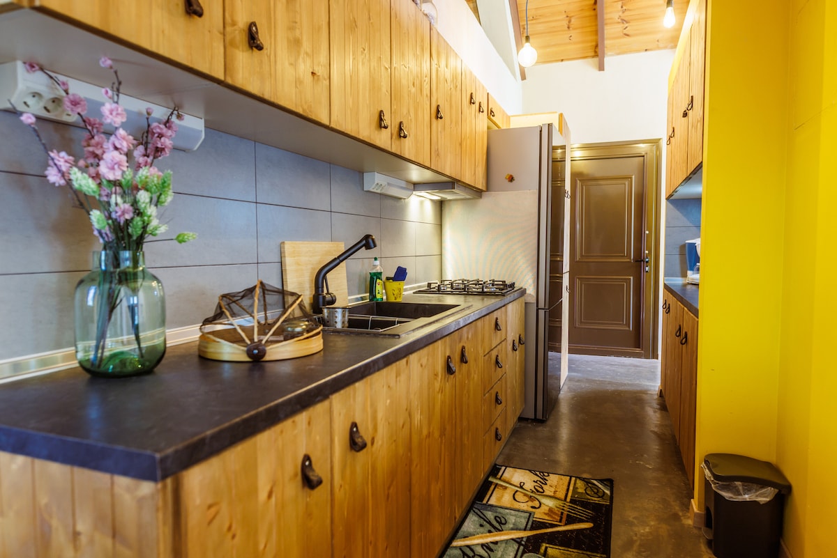 Ολοκαίνουργια, ζεστή και φωτεινή σοφίτα σε ήσυχη γειτονιά, μόλις 5’ με τα πόδια από το κέντρο. Μεγάλη τζαμαρία με όμορφη θέα, άνετο μπαλκόνι και ιδιωτική αυλή με μπάρμπεκιου υγραερίου και κάρβουνου. Μοντέρνοι, προσεγμένοι χώροι με ξύλινη διακόσμηση και όμορφο μπάνιο προσφέρουν άνεση και χαλάρωση για ζευγάρια, ταξιδιώτες ή επαγγελματικές διαμονές.