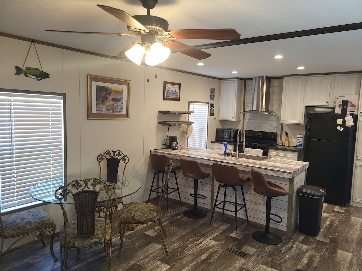 Scopri il fascino distintivo di questo rifugio unico nel suo genere. Ideale per una fuga nel weekend o una rilassante gita di pesca, la baita vanta un lussuoso letto matrimoniale grande con comandi regolabili per la testa e i piedi. Goditi l'intrattenimento sulla smart TV in streaming e resta connesso con Internet ad alta velocità Starlink. Completo di dock e posto auto coperto con strutture di ricarica. Situato a 45 km dal Cypress Bend Golf Resort e a soli 1,6 km dal molo più vicino nel parco statale.
