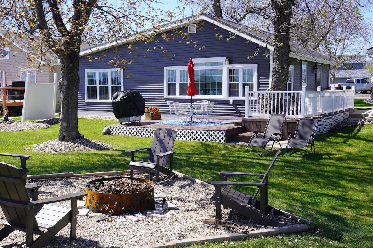 Rilassati nel tuo cottage privato vicino alla spiaggia e molto altro! Due camere da letto con letti completi, cucina completa, bagno, soggiorno aperto con smart TV, futon e ampie sedute. Ampia terrazza con barbecue a gas e vista sul lago. Proprio di fronte si trova la bellissima Starbuck Beach e il punto di partenza per le barche. Percorri la pista ciclabile per gustare un gelato al porto turistico o dirigiti verso lo State Park per escursioni a piedi, a cavallo e anche su sentieri invernali. Prova uno dei ristoranti, birrerie o cantine della zona, molti dei quali con vista sul lago! Vivere al lago non potrebbe essere più bello!