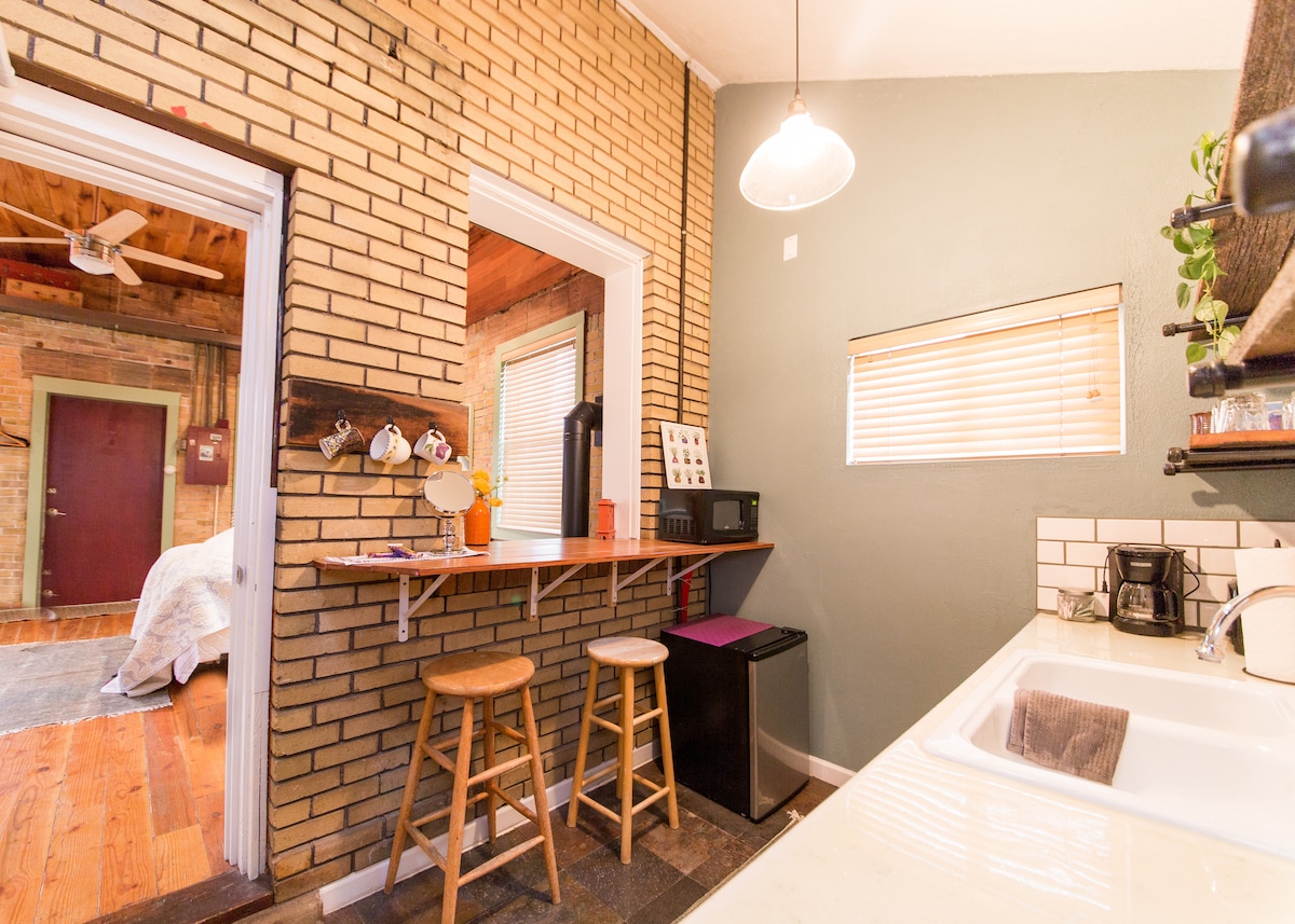 Bungalow in mattoni con una camera da letto splendidamente decorata; goditi la sensazione lussuosa ma affascinante della cucina gourmet personalizzata con grande isola, piani di lavoro in quarzo, combinazione di armadietti frontali in legno massello e vetro, elettrodomestici intelligenti in acciaio inossidabile di alta gamma; chiedi ad Alexa indicazioni stradali, il meteo o di riprodurre musica e lo schermo Wi-Fi del frigorifero intelligente LG risponderà. Bagno interamente piastrellato con box doccia europeo in vetro, piastrelle in stile metropolitana e soffione a pioggia con pressione dell'acqua ottimale. Questo spazio unico ha uno stile tutto suo.