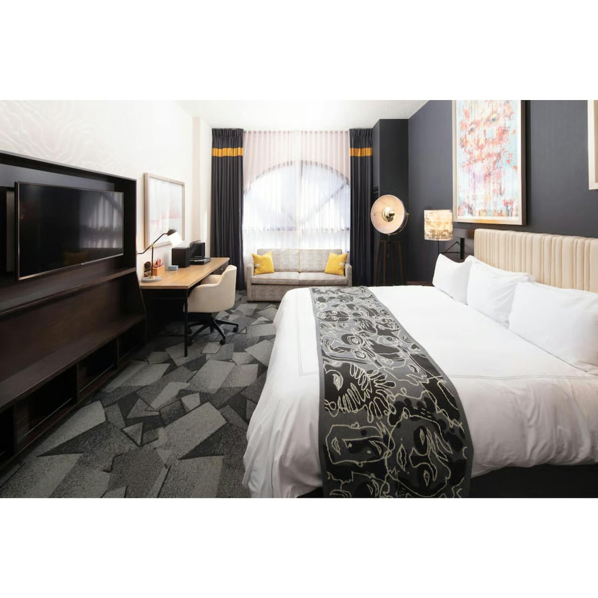 Experience a stay where art meets comfort at Saint Kate – The Arts Hotel. Each room is adorned with original pieces by Wisconsin artists and comes equipped with a record player, a ukulele, and supplies for creative expression. Luxurious linens, spa-inspired bath amenities, and modern tech ensure relaxation and convenience. Whether you’re unwinding before a show or planning your next city adventure, this space will leave you feeling inspired and at home.