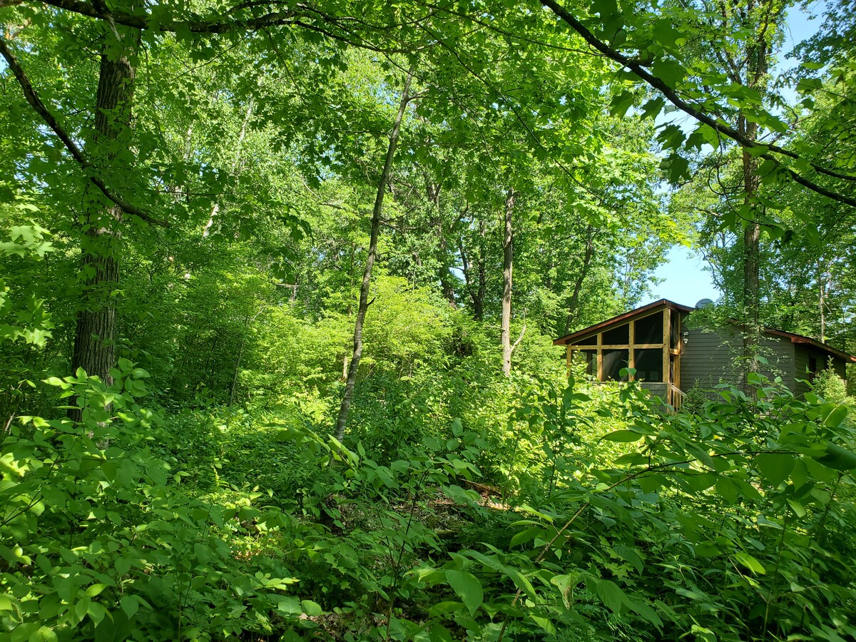 Alloggio remoto, tranquillo, silenzioso ed estremamente privato, proprio sulle rive di un fiume protetto, a solo un'ora e mezza dalle Twin Cities! Anche il bellissimo viaggio è rilassante. Entra in un mondo di pace e tranquillità nel profondo dei boschi. Prepara deliziosi pasti in una cucina moderna di fascia alta ben fornita, gioca nel fiume, rilassati nella sauna o goditi un falò. Questo non è un tipico chalet, ma un'oasi ecologica spirituale con una miscela eclettica unica di estetica moderna, rustica, nativa americana e giapponese.