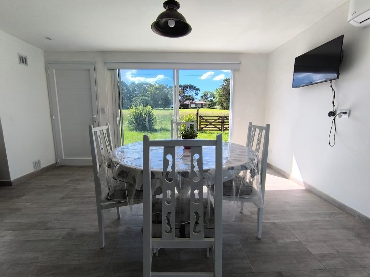 Acogedora casita amarilla de estilo campestre, ubicada en el tranquilo barrio Copacabana, Miramar. A solo unas cuadras del mar, rodeada de árboles y naturaleza. A cuadras cascada, reserva natural Ideal para quienes buscan descanso, silencio y contacto con lo natural. ✔️ Baño con hidromasaje ✔️ Decks de madera ✔️ Aire acondicionado ✔️ Cocina equipada ✔️ Espacio verde amplio y arbolado Perfecta para parejas, familias o amigos. Te esperamos para que disfrutes de una estadía relajante