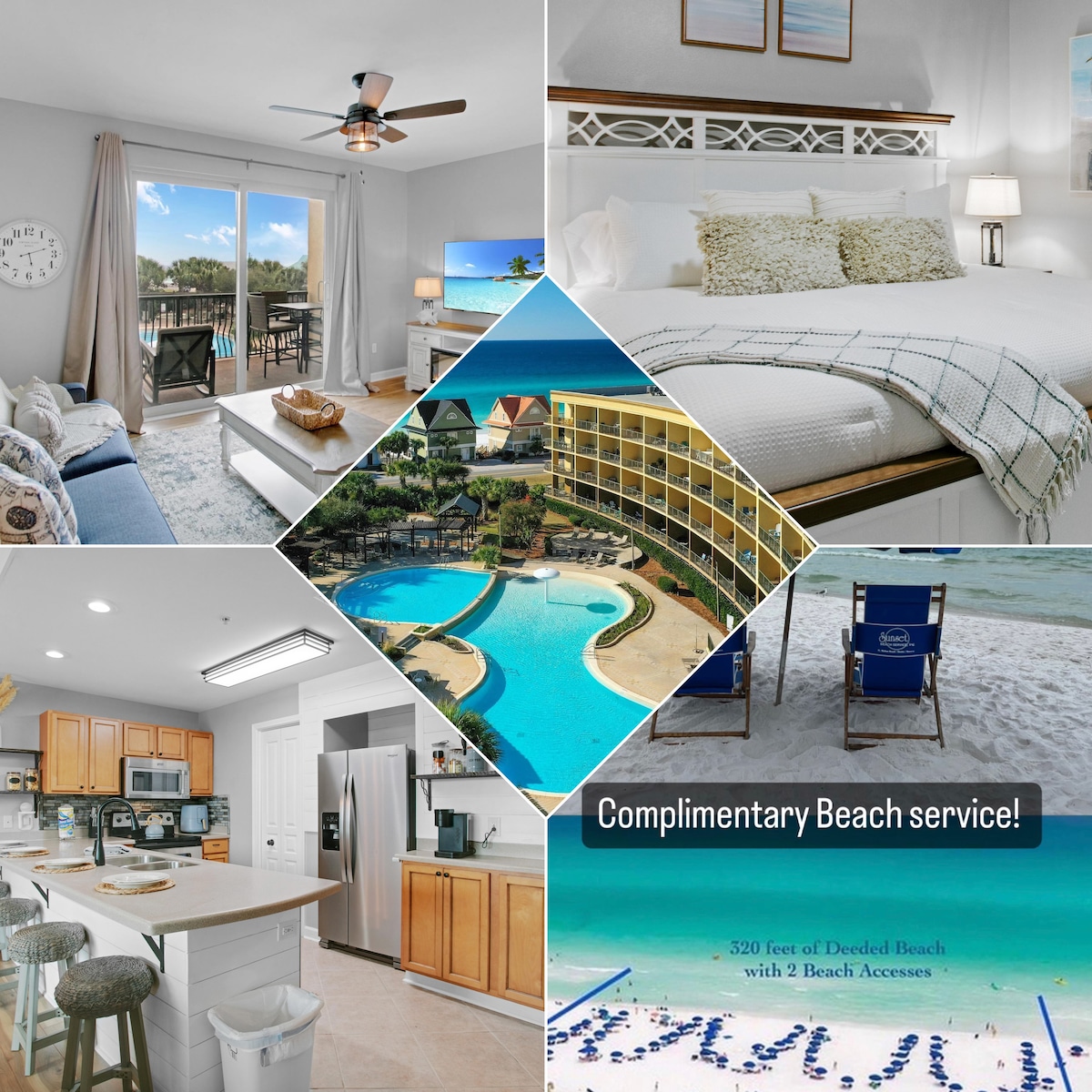 CostaVista™ by Epiqhost is a luxury beachfront 2BR/2BA condo at Sandestin® Golf and Beach Resort featuring private deeded beach access, stunning Gulf views, and modern coastal décor. Relax on your private balcony overlooking the emerald waters or enjoy the heated pool, hot tub, and fitness center. Includes tram passes, free parking, beach towels, and (4) backpack beach chairs—perfect for families, couples, or small groups.