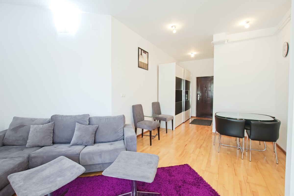 L'appartamento è facilmente raggiungibile dalla tangenziale di Iasi, per evitare il traffico intenso della città, a circa 15 minuti da Palas/City Center, in auto personale o con i mezzi pubblici (la stazione è a 2 minuti a piedi). L'appartamento si trova in un nuovo complesso residenziale, al 3° piano, in un condominio dotato di ascensore, con negozi nelle vicinanze: Two steps (100 metri), Kaufland (200 metri), Lidl (600 metri) e un centro commerciale, Family Market (500 metri).