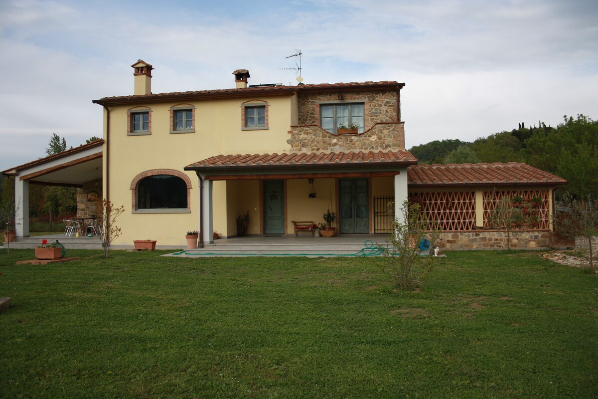 Villetta a 4 km. dal centro di Arezzo: Appartamento con camera matrimoniale bagno e cucina in stile toscano, ingresso privato, parcheggio e giardino.Nella cucina si trova già un piccolo "kit" di benvenuto con :Caffè,thè zucchero , sale ,acqua e quando è possibile della frutta coltivata nel nostro orto .Il parcheggio privato è provvisto di allarme .Tavolo sedie , sdraio, portico e giardino sono per il vostro relax.