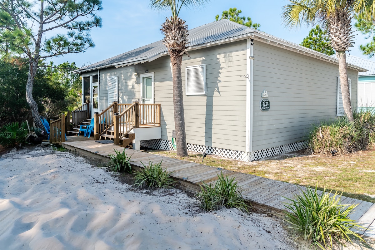 Con vista sulle bellissime spiagge sabbiose di Gulf Shores, questo cottage sulla spiaggia ristrutturato non ti deluderà. Recentemente ristrutturato all'interno e all'esterno. L'accesso alla spiaggia è a pochi passi di distanza, e ti aspetta un ampio portico con vista sul golfo. Questo è un cottage accogliente, ideale per staccare la spina in una zona orientata alle famiglie e non molto commerciale. L'accesso alla spiaggia pubblica è a 7-8 lotti in entrambi i sensi dalla casa e di solito non sono affollati.