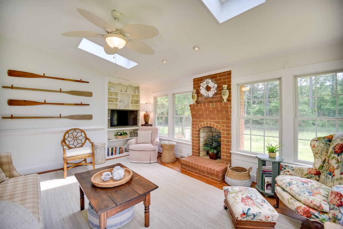 Vieni a visitare questo ambiente tranquillo e silenzioso sul fiume Ware, nella storica Gloucester, in Virginia. Il cottage si trova in una proprietà sul lungomare di 26 ettari. Questo accogliente cottage completamente ristrutturato è un'ottima base per esplorare Williamsburg, Yorktown, Jamestown e Richmond. Gli animali domestici sono i benvenuti, previa approvazione e dietro pagamento di un piccolo supplemento. Ci sono diversi edifici e giardini da visitare, quindi ti preghiamo di prendere nota delle didascalie delle immagini per maggiori dettagli sul cottage e su altre pertinenze.