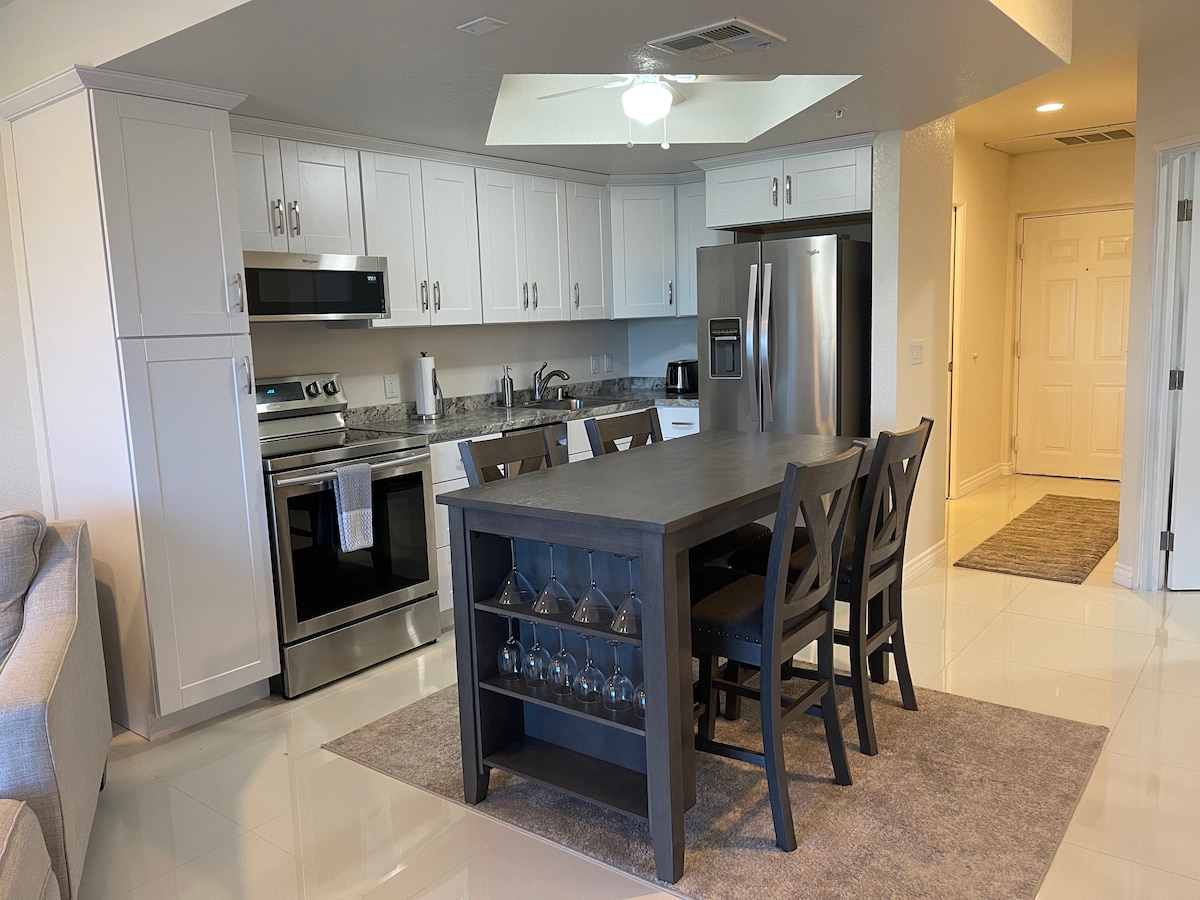 Questo appartamento al piano superiore di 62 metri quadrati, composto da una camera da letto con bagno privato, è stato splendidamente ristrutturato e dispone di piani cucina in granito. Si trova a pochi passi da Rotary Park, dal lago, dal London Bridge, dal campo da golf e da ristoranti divertenti. Il nostro appartamento può ospitare quattro persone e offre una camera con letto king-size e TV. La zona giorno principale offre un letto queen-size a scomparsa. Le caratteristiche aggiuntive includono wifi gratuito, una piccola lavatrice/asciugatrice e una cabina armadio. La nostra intenzione è che tu possa creare ricordi meravigliosi del Lago Havasu