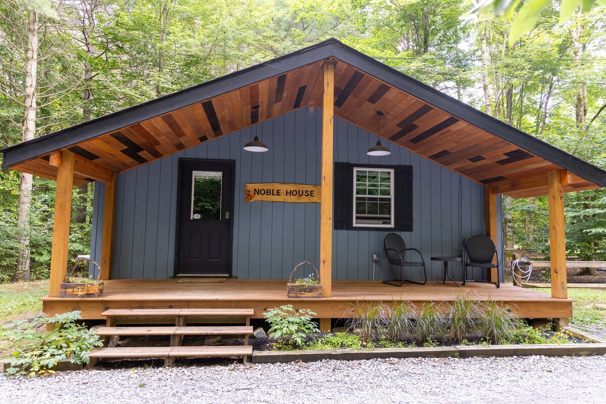 The Cottage at Brookledge, ex campo estivo per ragazze - 18 km dal lago Sacandaga - 19 km dal centro di Saratoga e dallo SPAC - Animali domestici ammessi - Proprietà recintata di 24 ettari - Focolare -Vista sul torrente con terrazza panoramica - Riscaldamento - Frigorifero vintage, senza frigorifero -Piano cottura, griglia, bollitore, pentole, padelle, utensili, stoviglie - Latrina privata esterna - Docce nella sauna (aperta tutto l'anno) - Serbatoio d'acqua in cabina - Generatore Jackery per l'elettricità -Giochi, libri, amaca -Nessun wifi nel cottage -Wi-Fi disponibile nel padiglione