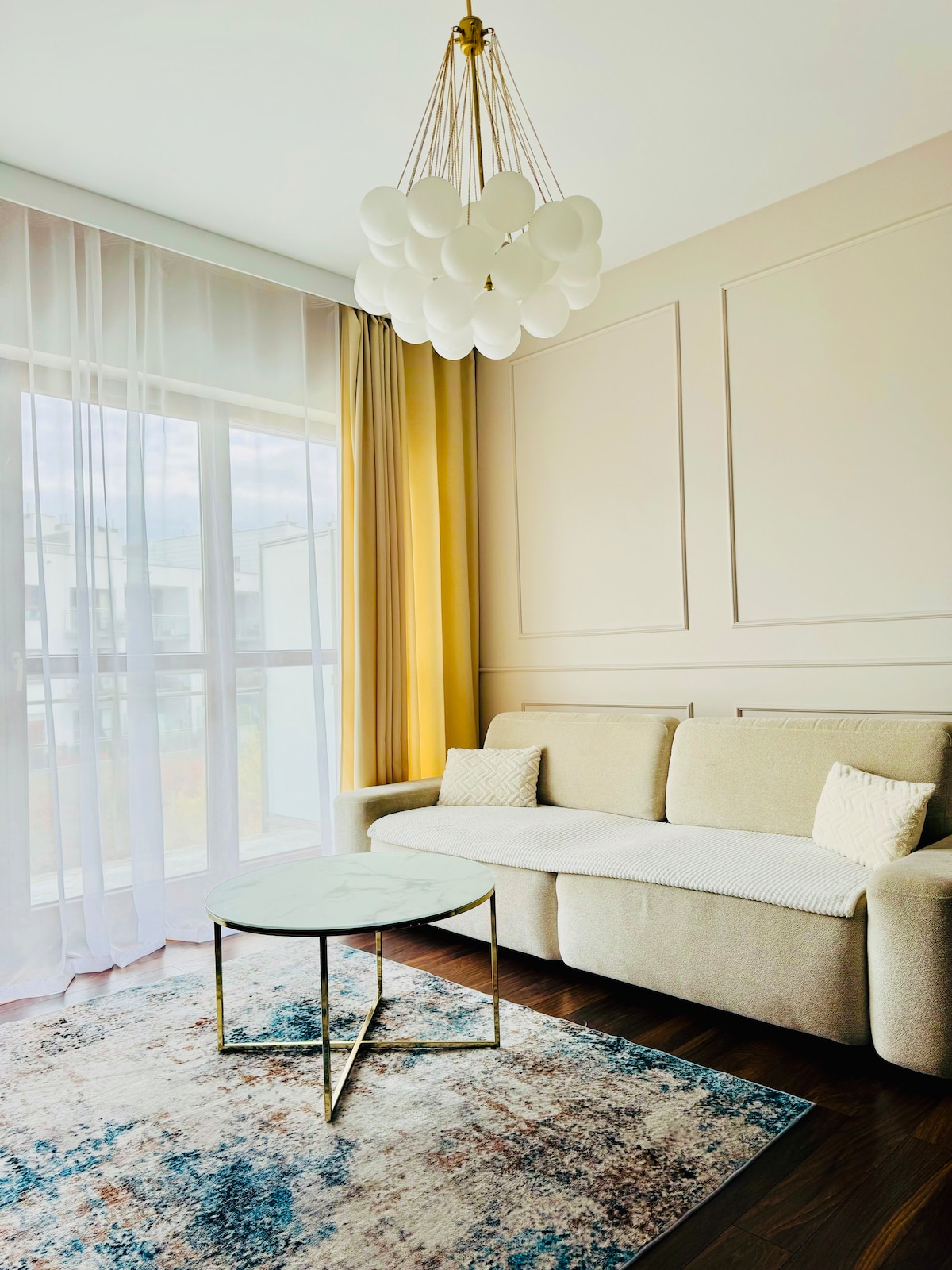 Quando abbiamo creato questo appartamento con una camera da letto, volevamo renderlo il più funzionale possibile, ma anche molto accogliente ed elegante. Uno spazio dove rilassarsi e sentirsi a casa. Troverete un comodo letto matrimoniale dietro il muro industriale, poltrone dove potrete sedervi comodamente e guardare un film, una cucina completamente attrezzata e un piccolo bagno. Un enorme vantaggio di questo monolocale al 7° piano è l'affascinante terrazzino, dove potrai rilassarti con un caffè o uno spuntino quando fuori c'è il sole.