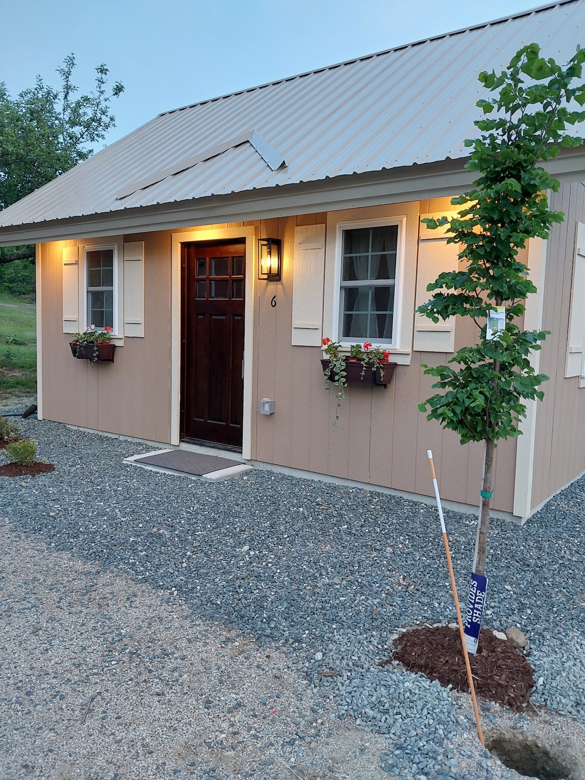 Questo grazioso bungalow si trova in una fattoria biologica nascosta, a 45 minuti da Bar Harbor e dal Parco Nazionale di Acadia, e confina direttamente con il Downeast Sunrise Trail e migliaia di ettari di terreno protetto. Spazio di nuova fattura con interni in pino e pavimenti in sughero. Per chi apprezza la vita semplice ma vuole un letto comodo! Culla disponibile per una terza persona. Materasso matrimoniale, biancheria da letto, fornello con forno, pentole, padelle e stoviglie, piccolo frigorifero e servizi igienici a compostaggio a base di segatura (sul portico posteriore)