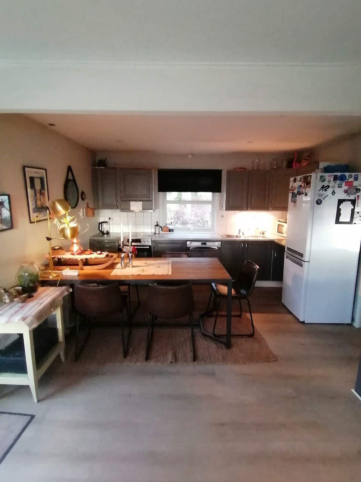 Appartamento rurale e spazioso con 2 camere da letto e spazio per famiglie o coppie. Luminoso, grande soggiorno con caminetto. L'appartamento non dispone di cucina completa. (vedi foto) Ingresso privato. Gli ospiti hanno a disposizione l'intero piano da solo. Giardino esposto a sud con vista e barbecue/braciere. I cani sono i benvenuti. 20 minuti per il centro di Kristiansund. Vicino alla foresta e al lago, senza vicini Funziona bene in tutte le stagioni.