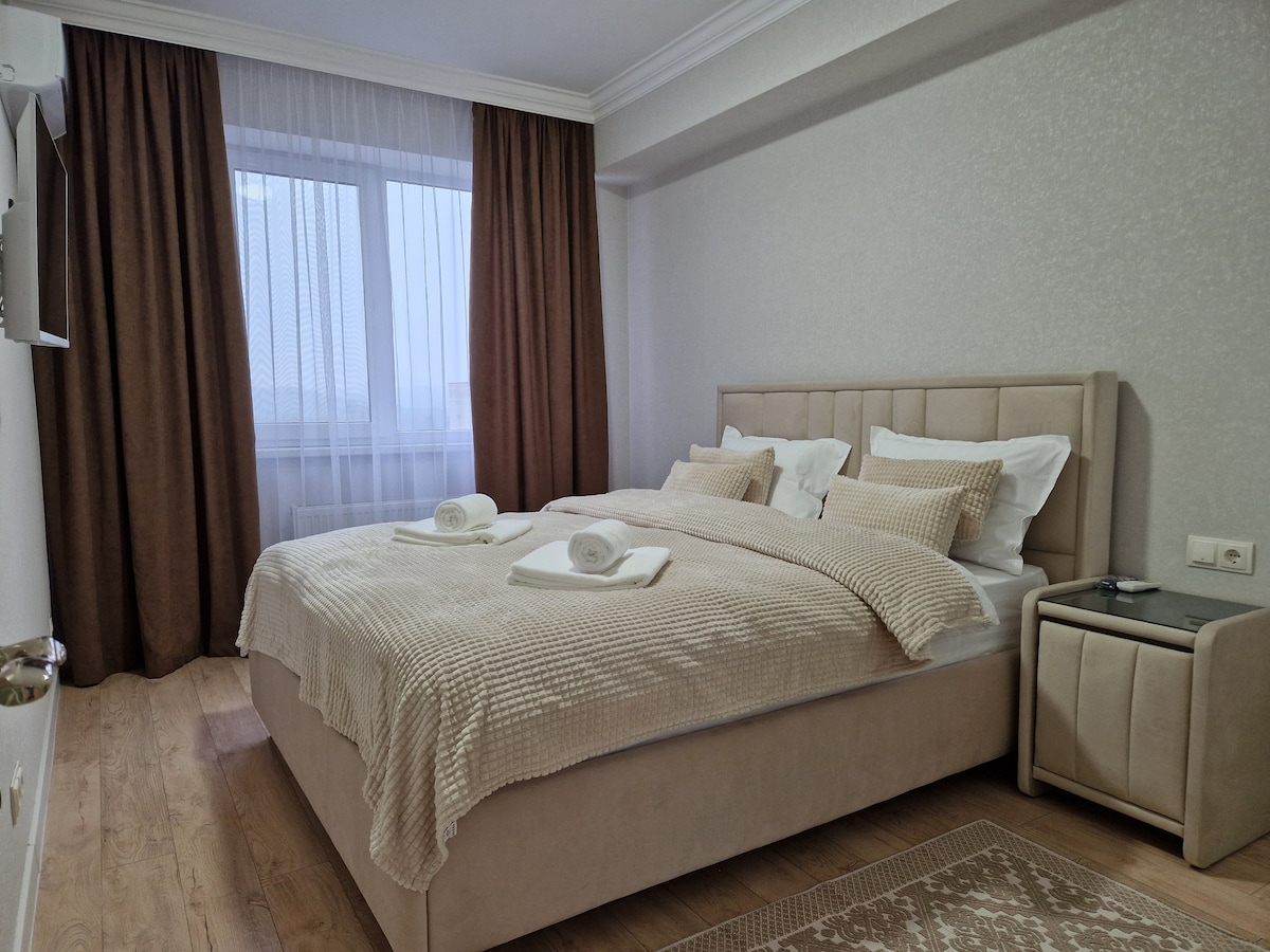 Современая квартира в новом доме в центре города по улице А.Пушкин 47/5,в 5 минутах ходьбы от главной улицы столицы.Вы сможете наслаждаться приятной атмосферной в центральном парке "Alexander Puskin" также в нескольких шагах находиться торговый центр Sun City . Современные интерьер,панарамные окна , сделают вашим прибытьем, идеальным домом во время визита в Кишинев, самый большой город Молдовы.