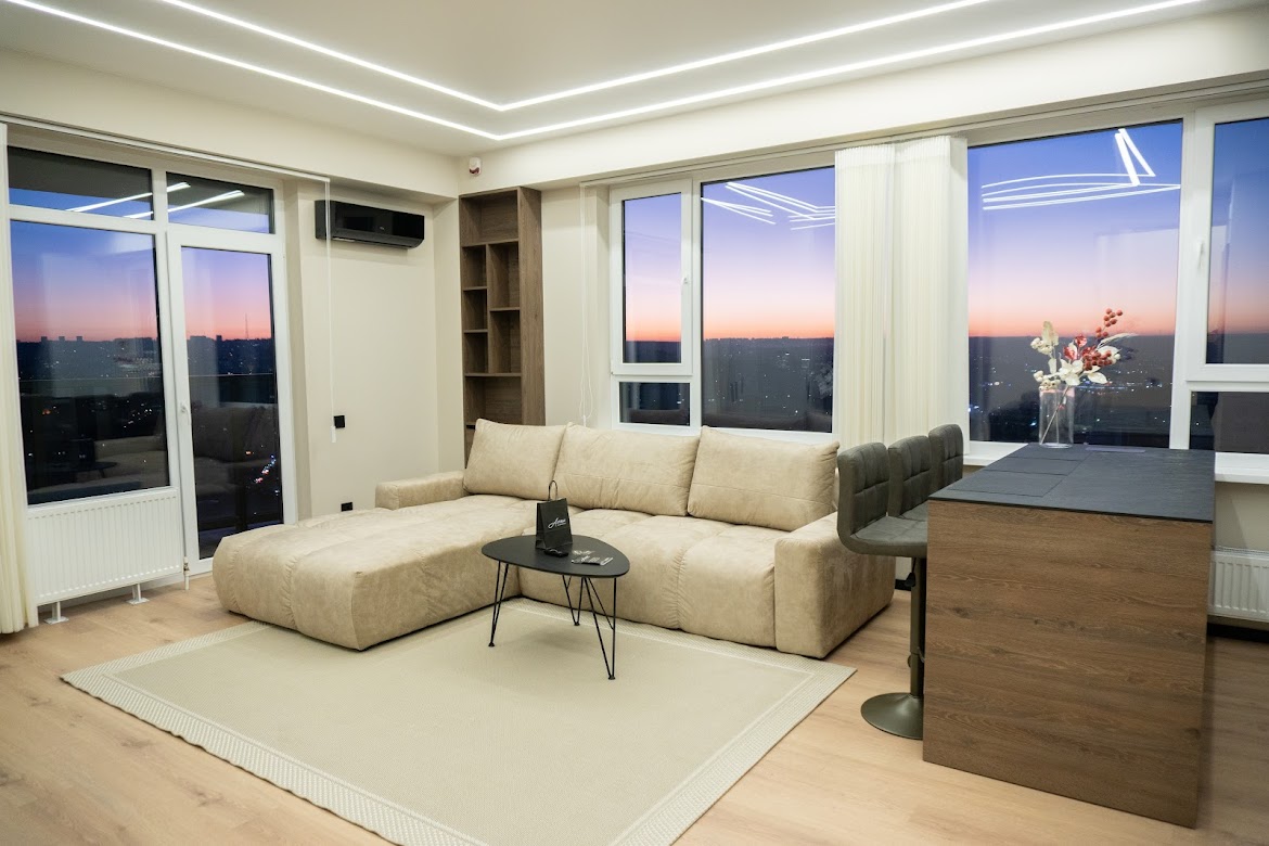 Benvenuti nel nostro moderno APPARTAMENTO 2Bd con terrazza e 2 bagni che offrono splendide viste sulla città. Arredi contemporanei e interni eleganti di un designer. Situato vicino alle principali attrazioni, a soli 25 minuti a piedi dalla Main Street. Situato dal parco ristrutturato "Avgan Park". Goditi una casa perfetta durante la tua visita alla capitale, la città più grande della Moldavia. Ideale per lavoro, famiglie o viaggiatori di piacere. Goditi il meglio della capitale moldova nel nostro spazio elegante e invitante.