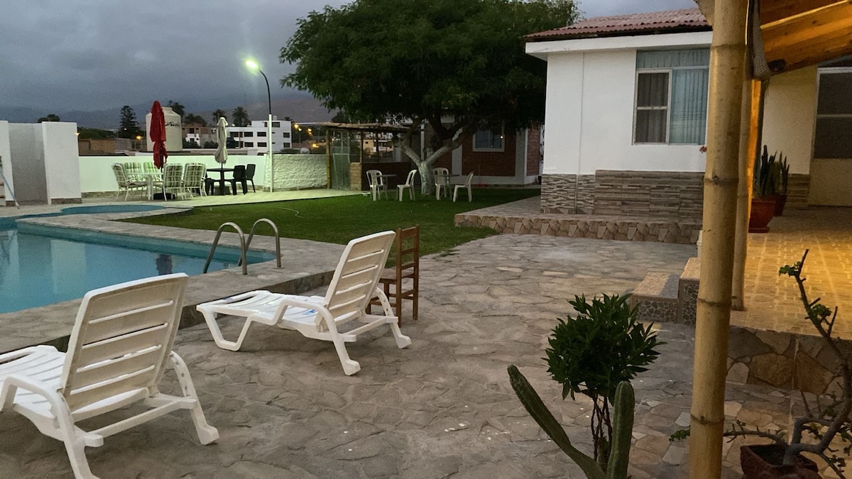 Goditi un soggiorno confortevole e accogliente nella nostra camera con capienza di 3-4 persone. Lo spazio è dotato di tre letti, tv per potersi rilassare dopo una giornata di sole e mare. Inoltre, avrai acqua calda per un'esperienza di riposo totale. La posizione è ideale: a soli 5 minuti di auto dalla spiaggia, che ti permetterà di goderti la costa quando vorrai. Vi aspettiamo per un'esperienza indimenticabile a Mollendo!