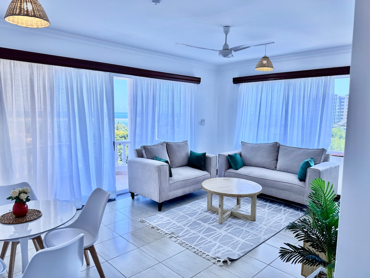Jambo guest! Enjoy comfort and convenience in this Nyali coastal 1 bedroom apartment, just few minutes from beaches, shopping malls and top restaurants. Perfect for solo travelers, business guests' and couples. What you'll have: Spacious, air-conditioned bedroom with a comfy king-size bed and plenty of storage Bright living room area with a tasteful decor and an android TV Fully equipped kitchen with cooking essentials for home-style meals Stable WiFi for working 24/7 security and free parking