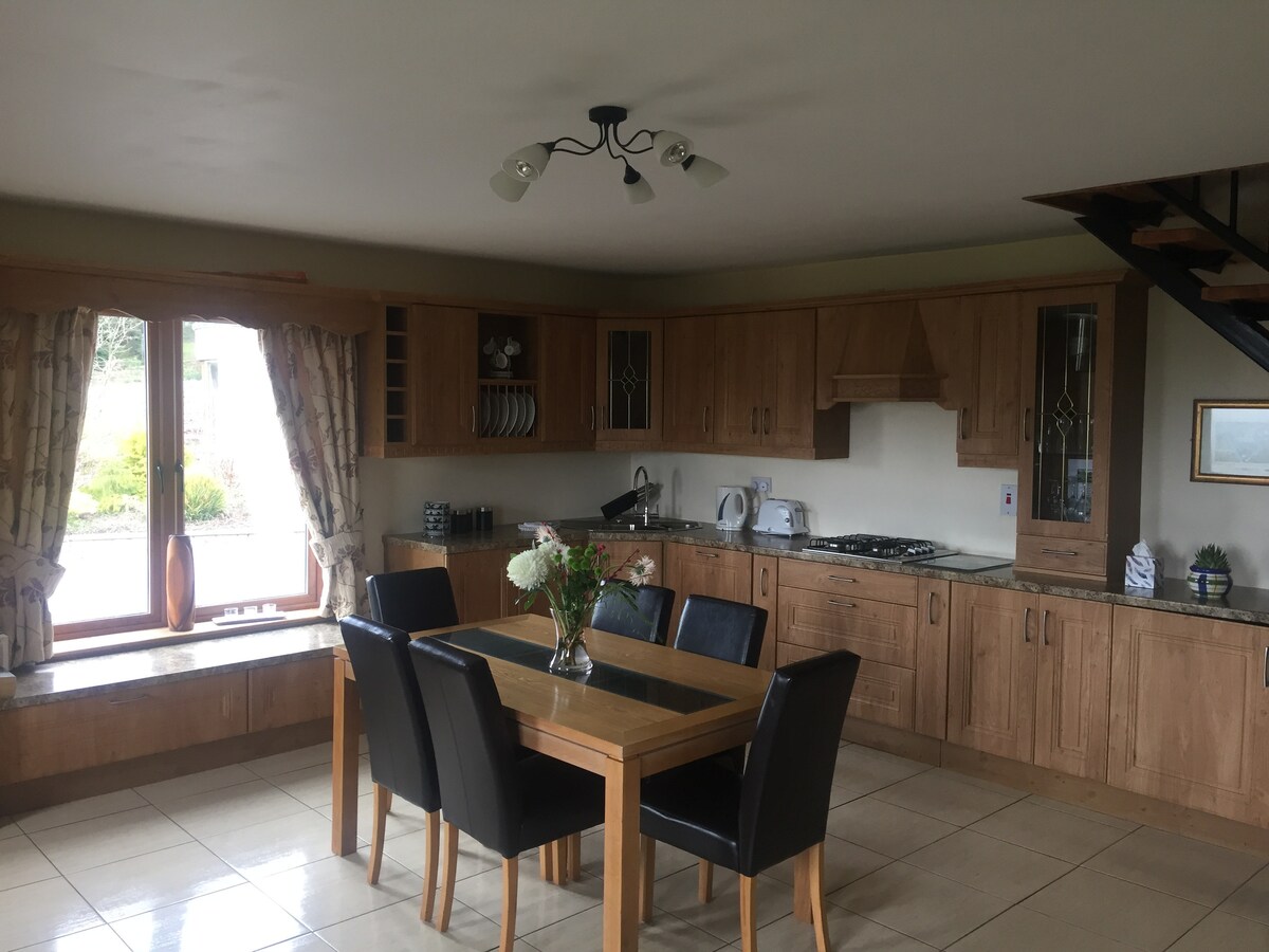 Il nostro cottage è immerso nelle splendide montagne di Slieve Blooms. Questo cottage vanta un tradizionale tetto di paglia circondato da una fantastica campagna. Il cottage dispone di due accoglienti camere da letto con letti comodi e lenzuola morbide. La cucina completamente attrezzata è perfetta per cucinare pasti abbondanti con ingredienti freschi e di provenienza locale. Riscaldati vicino al camino nell'accogliente soggiorno, dove puoi rilassarti con un buon libro o guardare un film sulla TV a schermo piatto.