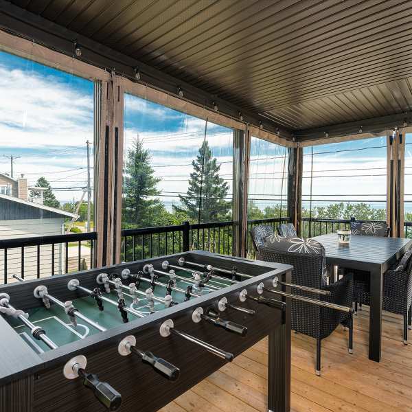 Les Hibiscus est une maison qui rappelle les habitations d’autrefois, avec ses pièces bien pensées, son toit en pente et une terrasse ouverte sur l’extérieur. Entre spa, coin feu et présence du fleuve tout près, c’est un refuge simple et lumineux au cœur d’un quartier paisible de La Malbaie. Parfait pour décrocher et profiter du rythme doux de Charlevoix.