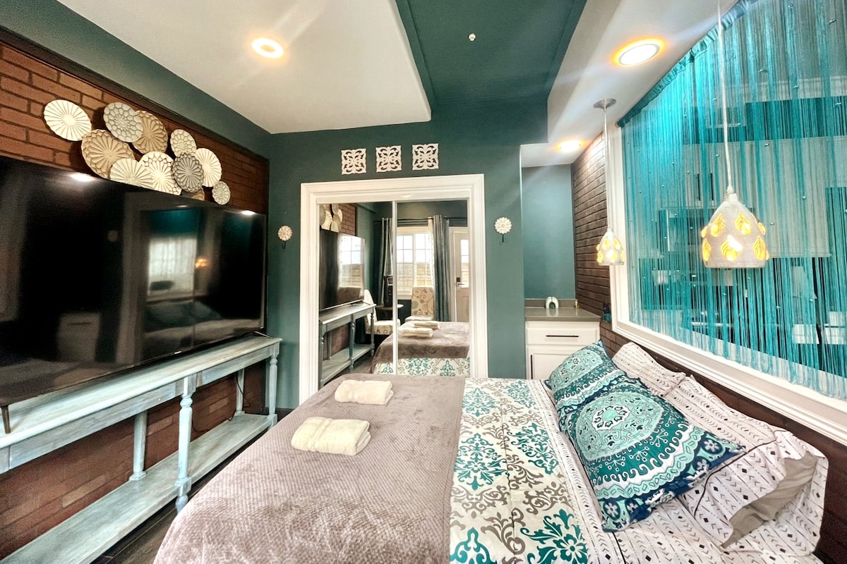 Numero di Licenza: 2354 Ti diamo il benvenuto nel nostro accogliente monolocale a tema spiaggia! Rilassati e distenditi con un comodo letto matrimoniale, cucina completa, bagno privato, aria condizionata centralizzata, ventilatore a soffitto e una smart TV da 50" con Hulu e Amazon Prime. Goditi l'accogliente salotto, perfetto per leggere o sorseggiare un caffè. Abbiamo rifornito la Keurig con cialde, panna e snack per te. Se hai bisogno di qualcosa durante il soggiorno, non esitare a contattarci. Goditi il soggiorno!