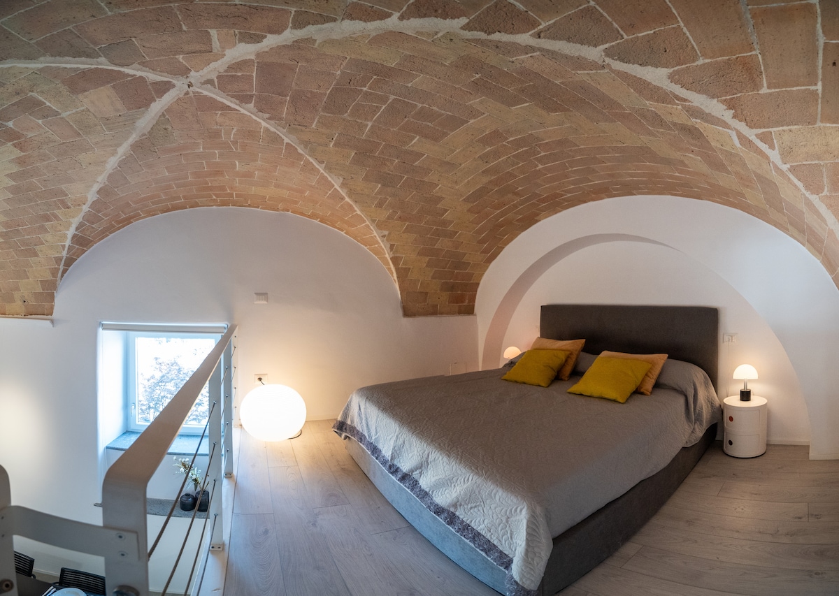 Goditi una vacanza all'insegna dello stile in questo spazio in centro a piano terra . Questo open space con camera nel soppalco e letto nel soggiorno è stato progettato in ogni parte con cura dei dettagli , la scala libreria in metallo cosi come la cucina ed il mobile letto apribile così come il bagno e la grande porta di ingresso sono stati realizzati su disegno da artigiani locali . Il locale a piano terra è stato recuperato con la pulizia delle soffitto a volta in mattoni di terracotta