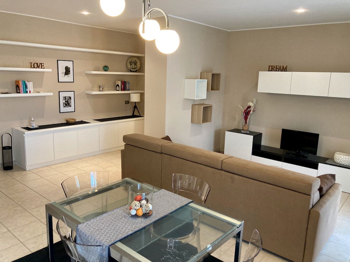 L'appartamento si trova nel cuore della cittadina, uscendo potrai immergerti immediatamente nel corso principale fra le vetrine dei negozi, alberghi del centro con i centri benessere. Non rinuncerai alla comodità di avere la tua auto vicina poiché sebbene sia in zona pedonale l'appartamento è dotato del suo posto auto privato nel cortile dell'edificio. L'appartamento dista pochi metri dal percorso verde del centro in prossimità del piccolo ospedale della città (circa a 10 minuti a piedi).