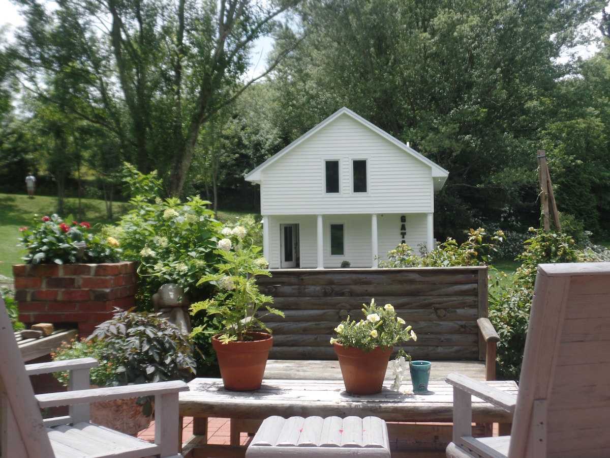 Vieni a rilassarti dopo una giornata intensa in questo monolocale collegato a una casa di campagna su 5 acri appena fuori dalla città. Dispone di pavimenti in legno, comode lenzuola e un ampio bagno con doppio lavabo e una colazione continentale che include pane all'uvetta alla cannella fatto in casa. Appena fuori è un grande avvolgente portico con comodi posti a sedere perfetto per gustare il caffè del mattino e il tè. A soli 10 minuti dal centro, ma lontano dalla folla impazzita!