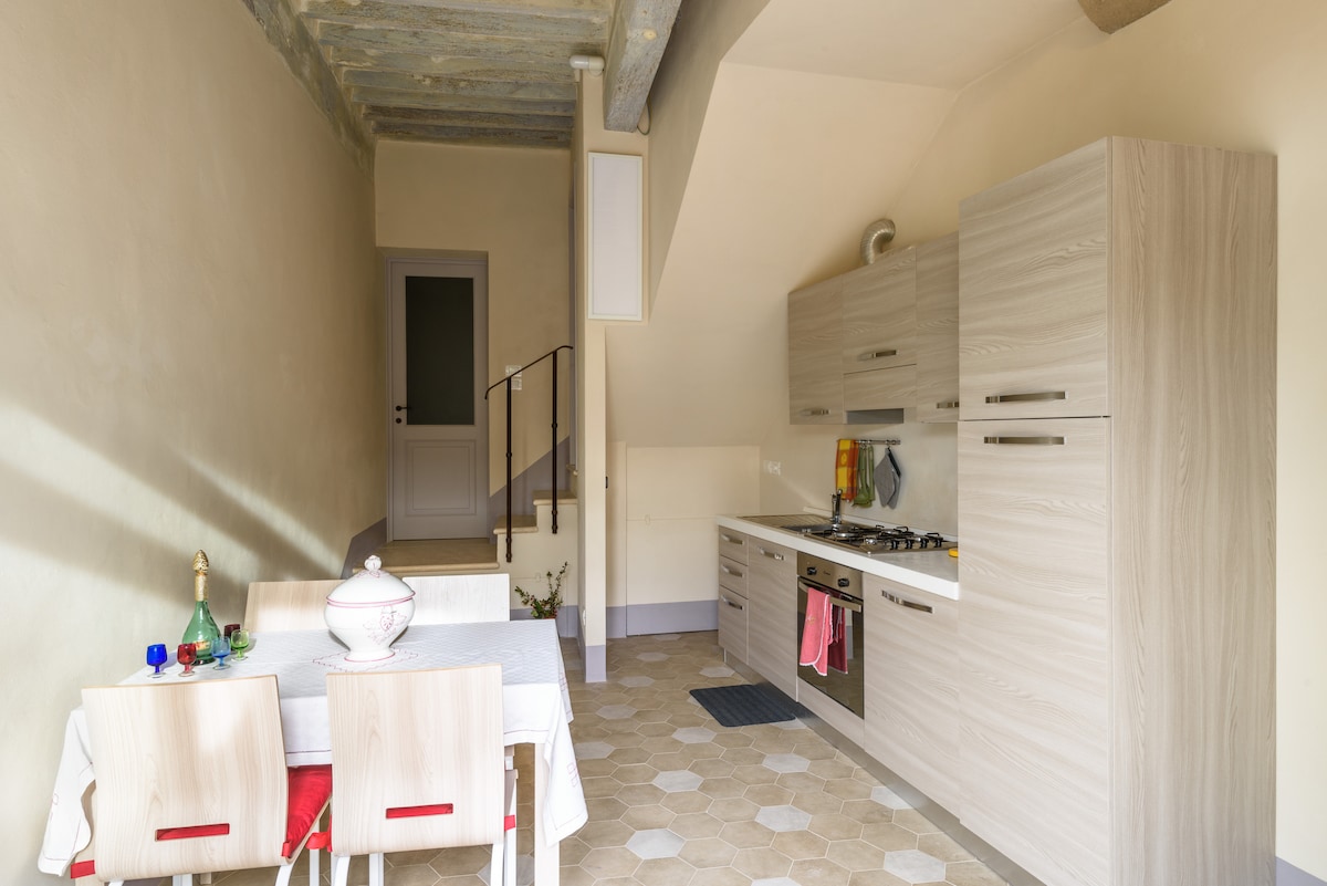 In 2023 my son Guglielmo and I decided to restore the old oratory of a church from the 1600s by creating a two floor apartment: upstairs we have 2 bedrooms equipped with AC and 2 en-suite bathrooms with shower; downstairs a spacious living room with stereo Available a table outside with great view and a nice garden 50 mt away where to have a private wine tasting or barbecue for all the guests of our 4 apartments, after 7pm if booked large in advance Large free parking area 100 mt away