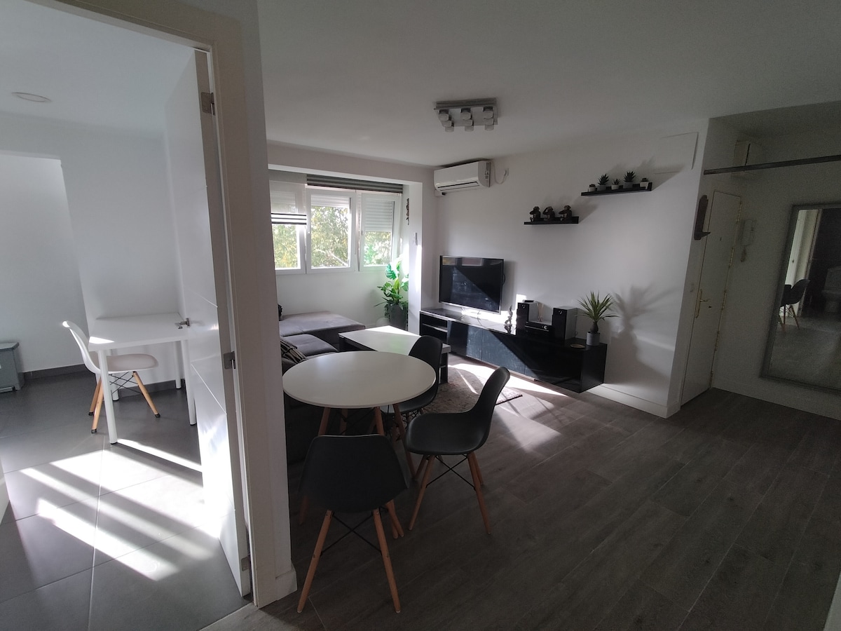 Bellissimo appartamento appena ristrutturato, con buone qualità. Con un meraviglioso patio che si può godere quasi tutto l'anno, dove poter fare colazione respirando tranquillità. Arredato con grande affetto, in uno spazio pratico ed elegante. In una posizione privilegiata, con i mezzi pubblici (metro e autobus) 2 minuti a piedi direttamente in città in 15 minuti. Un centro commerciale e un supermercato a 2 minuti a piedi e parcheggio gratuito in strada, senza parchimetri.